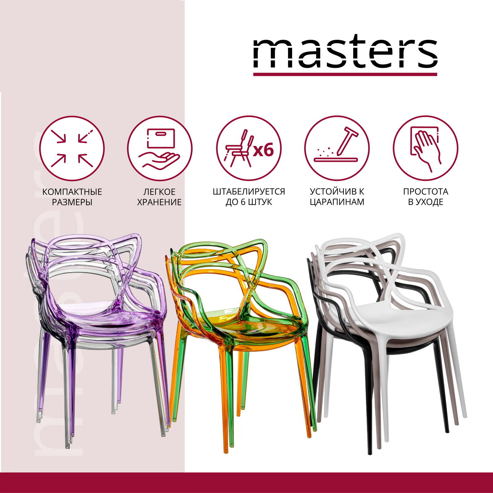 СохранитьСтулья для кухни 4 шт со спинкой пластиковые Masters прозрачный оранжевый интересное: