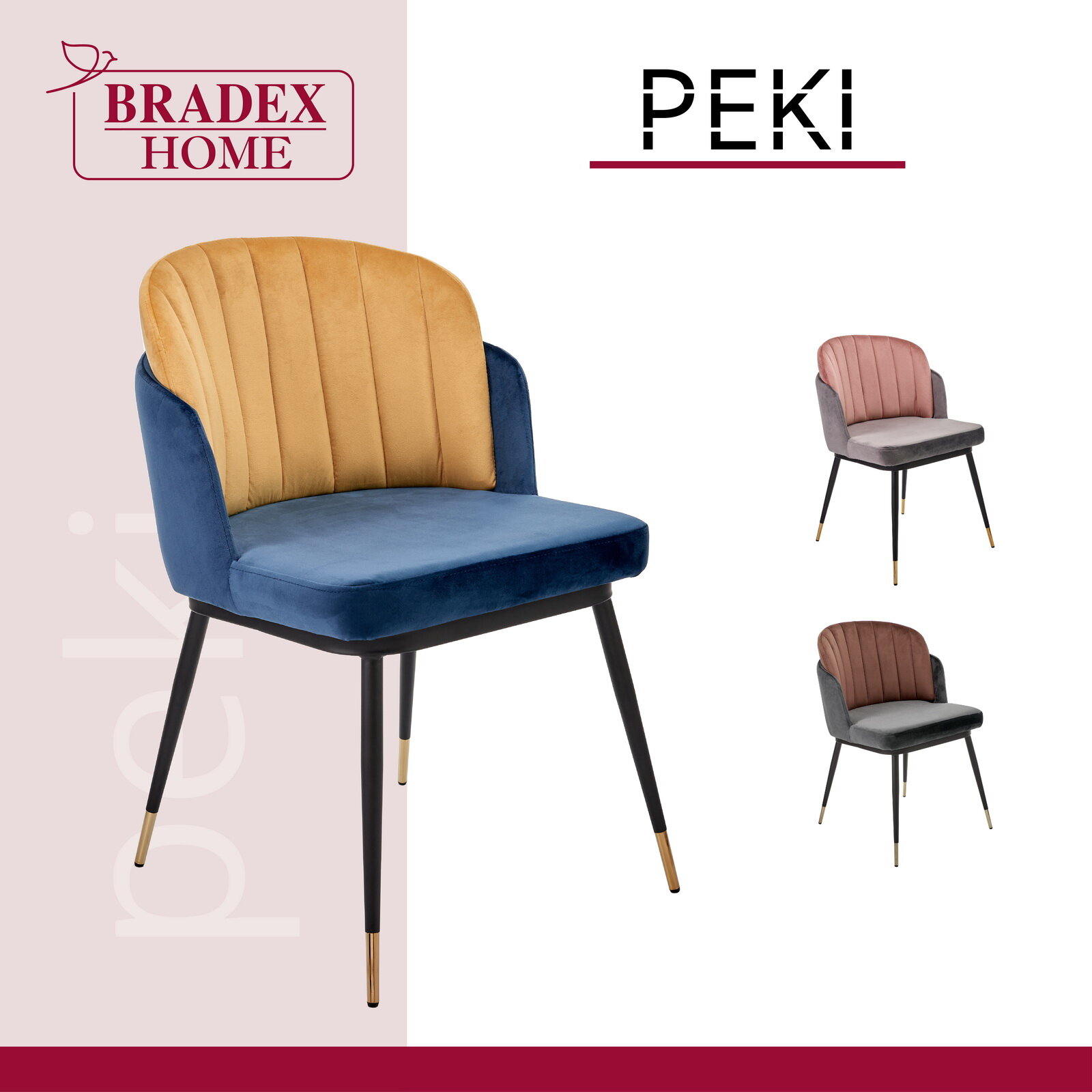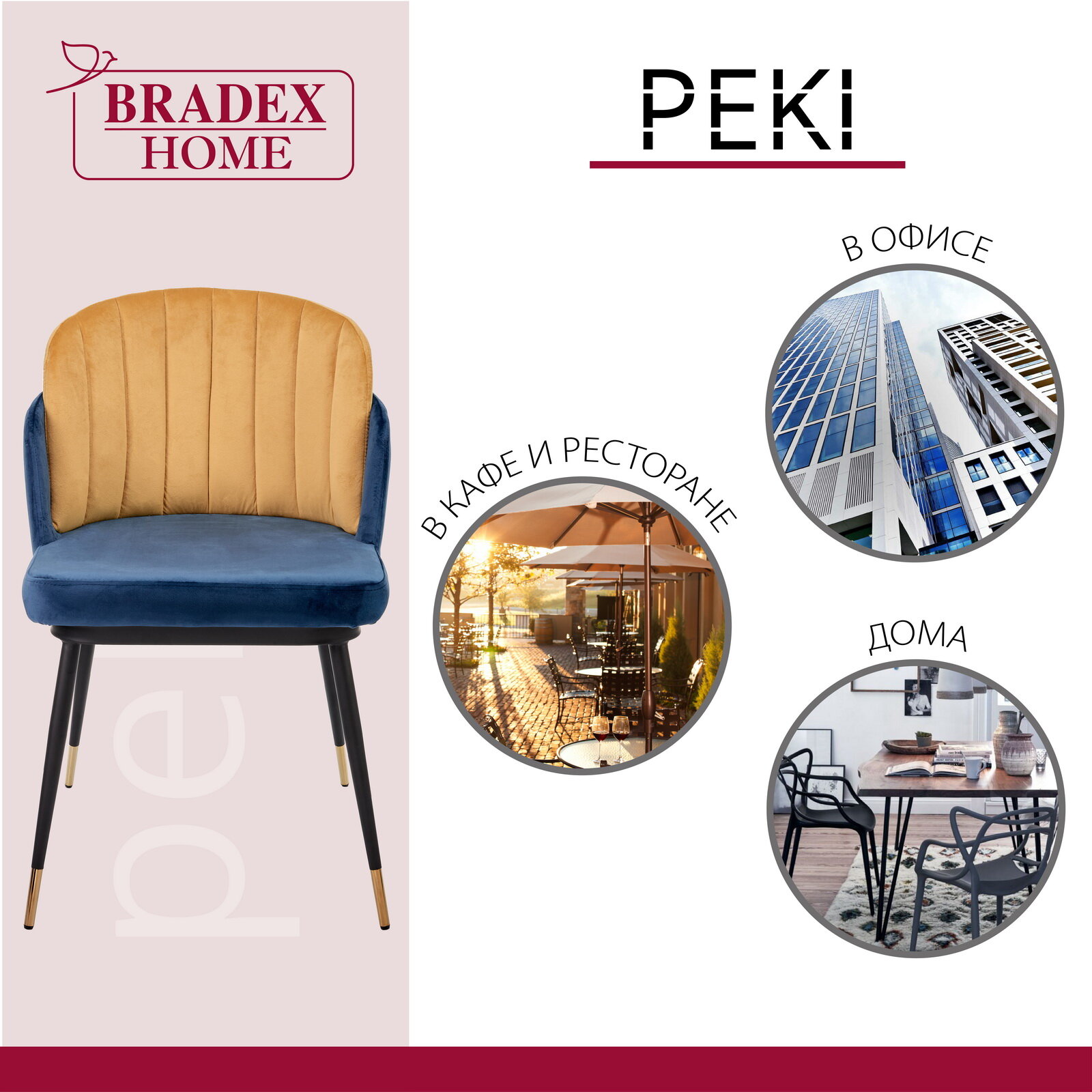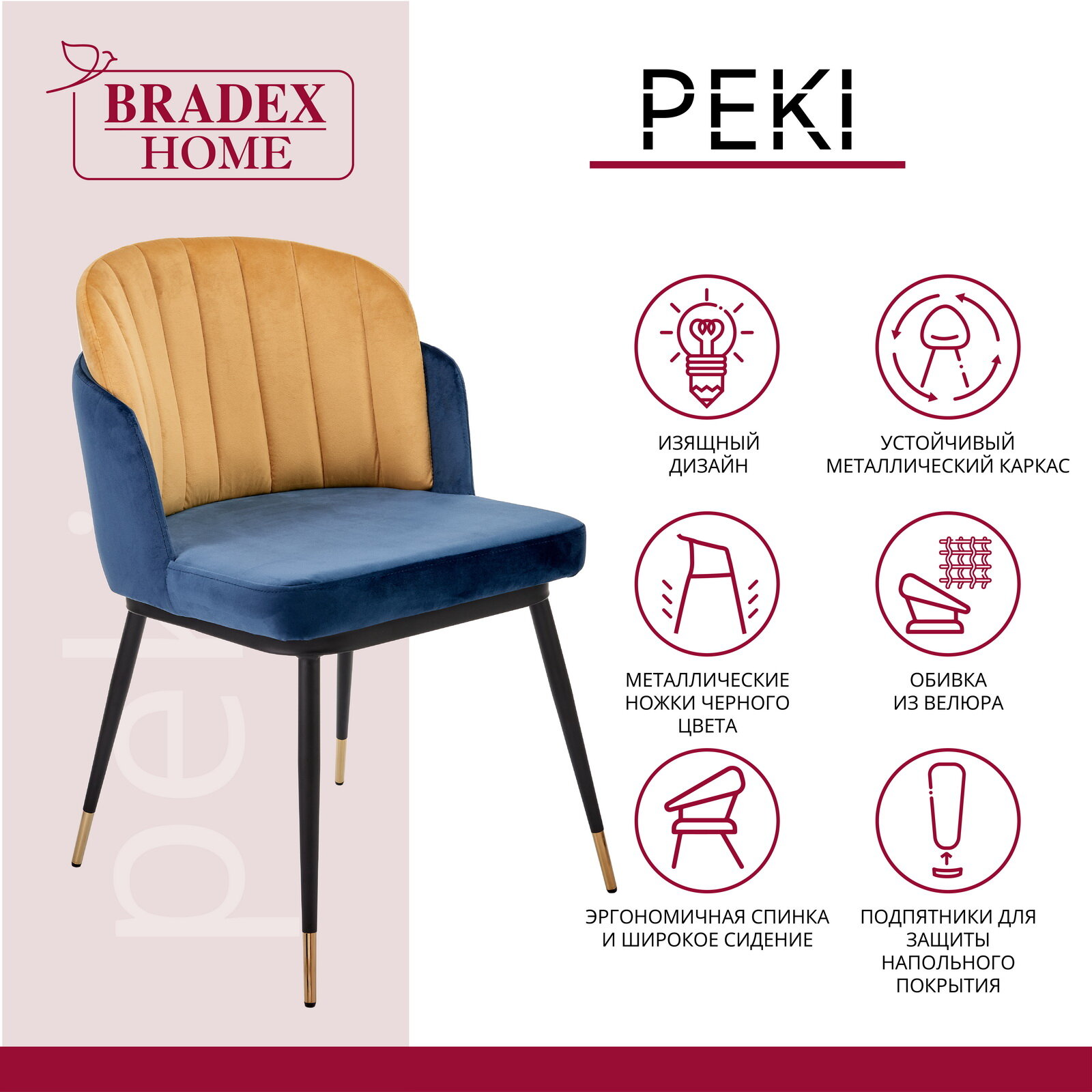 Стул Peki синий, горчичный / Стулья для кухни / Стулья кухонные со спинкой / Мебель / Стул мягкий / Стул обеденный