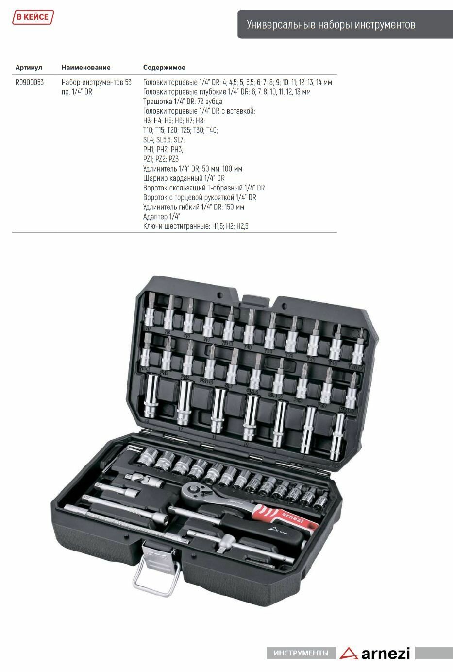 Набор Инструментов 53 Пр. 1/4"Dr ARNEZI арт. R0900053