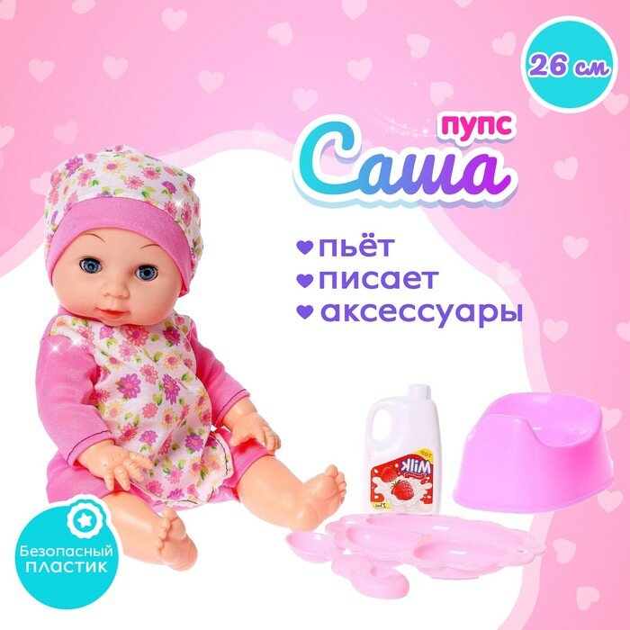 Купить Пупс интерактивный КНР "Саша" пьет, писает, с аксессуарами, розовые (7836168)