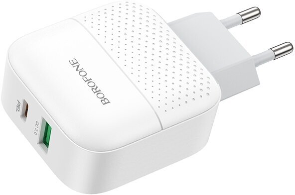 Сетевое зарядное устройство (СЗУ) Borofone BA46A QC 3.0 (USB/Type-C PD) + кабель Type-C-Lightning, 3 А, белый