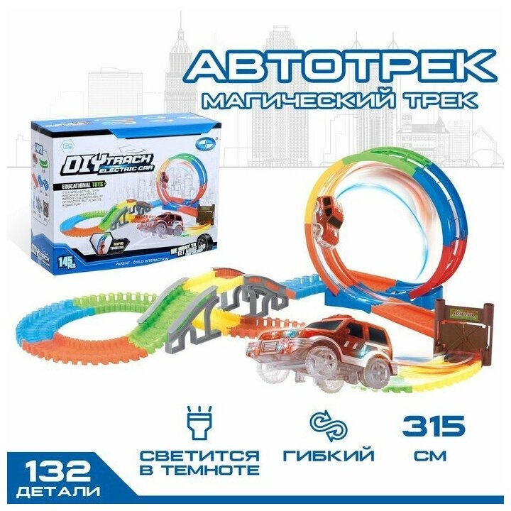 Автотрек «Магический Трек», гибкий, светится в темноте, 145 деталей, мёртвая петля (1шт.) интересное: