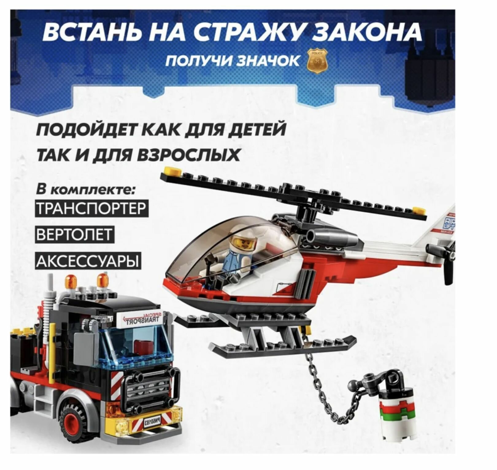 СохранитьКонструктор Сити Город Перевозчик вертолета 322 детали 10872 интересное: