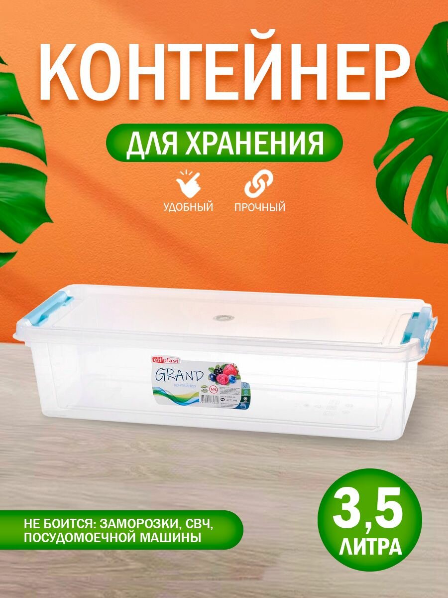 Контейнер elfplast "Grand" для хранения пластиковый с крышкой 3,5 л, (прозрачный) 494