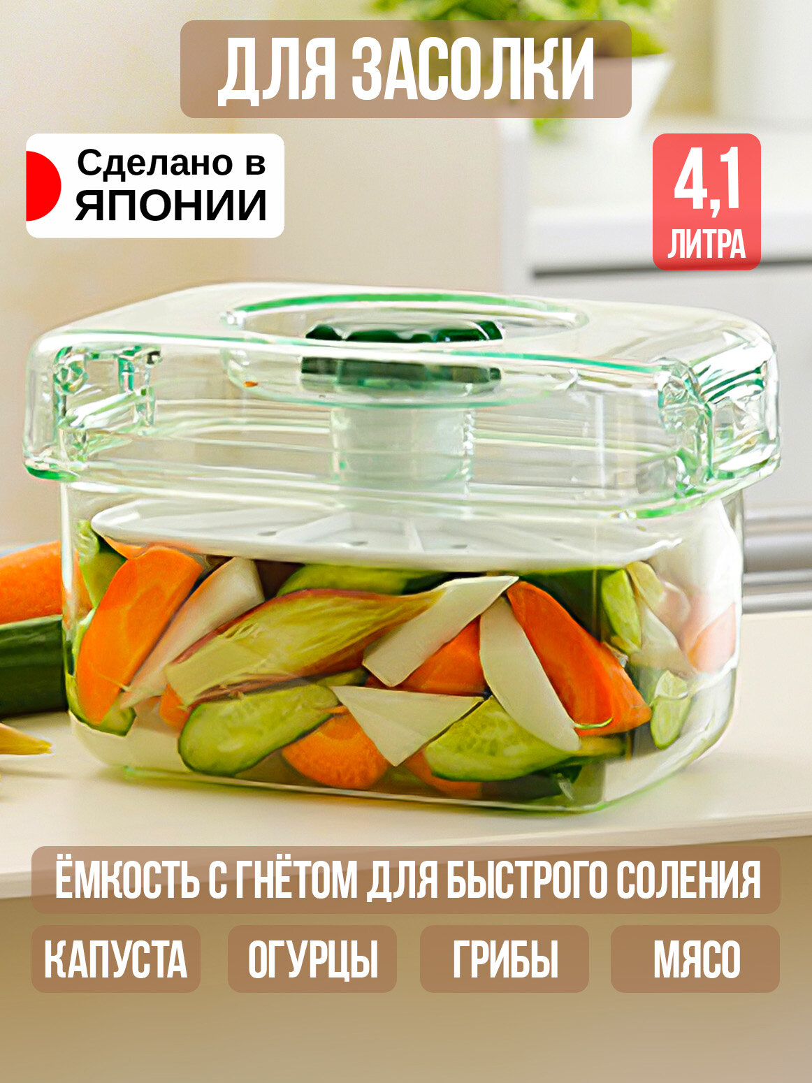 Контейнер для еды и засолки овощей пластиковый с прессом 4,1 л 27х17,5х16 см