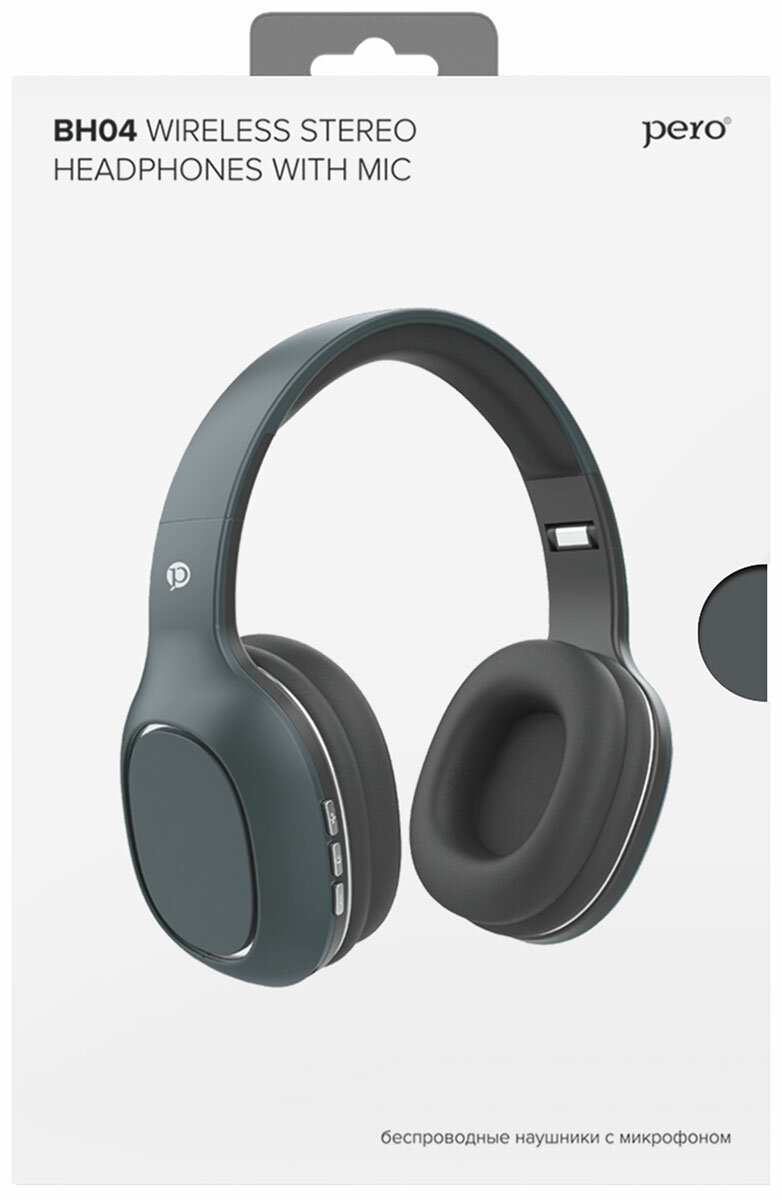 Наушники Pero Bh04, беспроводные, полноразмерные, микрофон, 400 мАч, до 20 часов, серые Pero 9568380 .