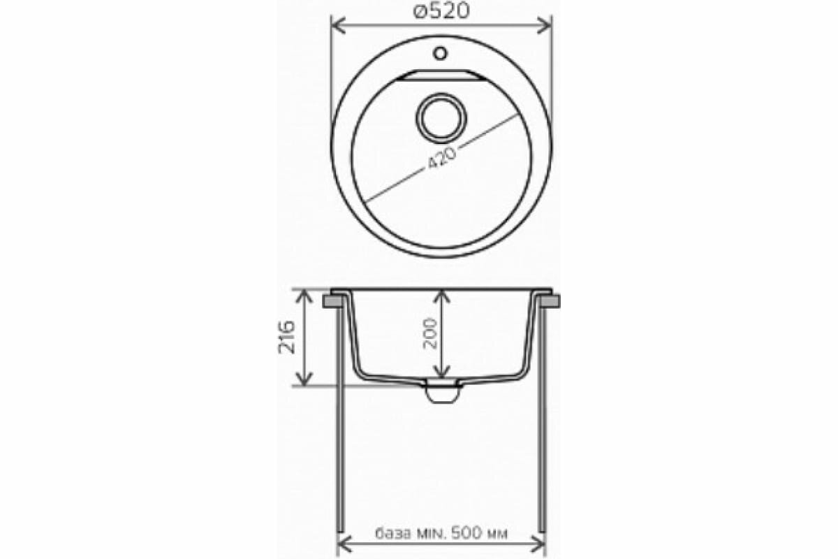Мойка для кухни POLYGRAN ATOL-520 каменная, врезная, раковина кухонная, круглая с отверстием под смеситель (№316 Космос)