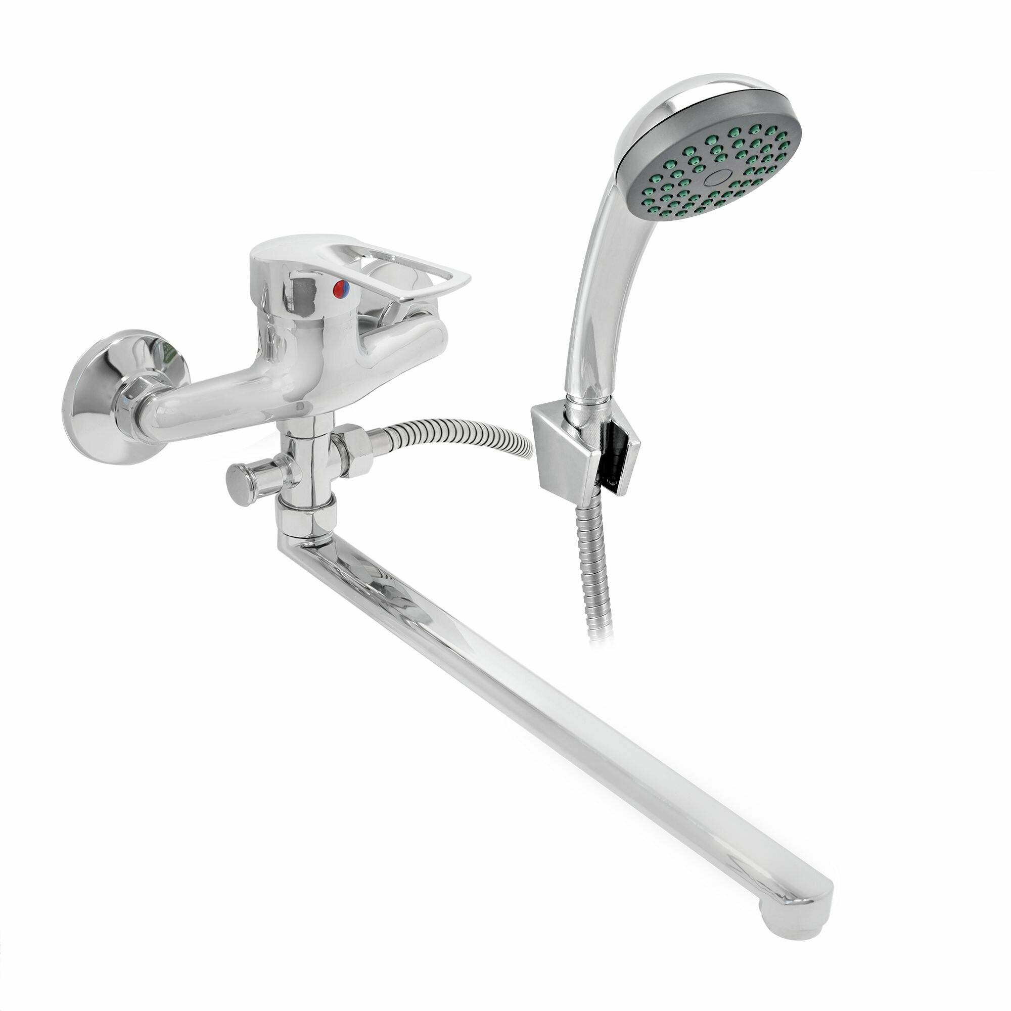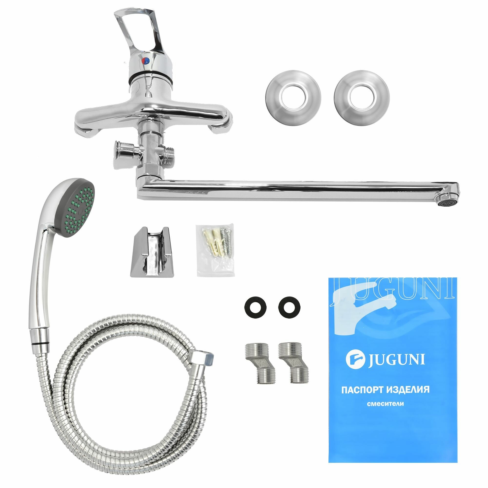 Смеситель для ванны с длинным поворотным изливом Джугуни (Juguni) / смеситель для душа в комплекте со шлангом, лейкой и держателем, Арт.: 0402.778