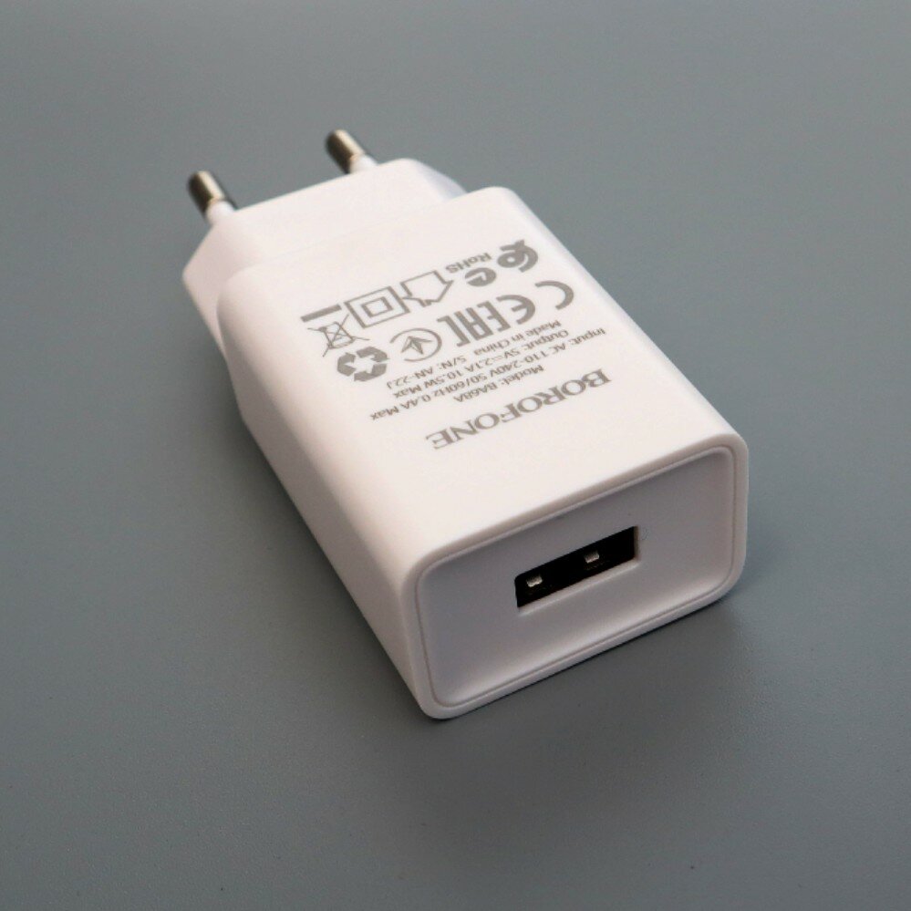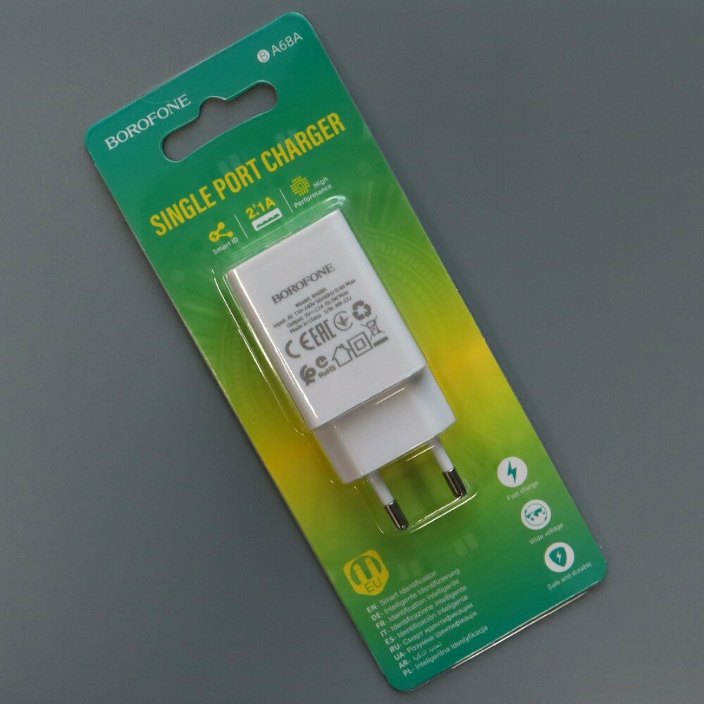 Сетевое зарядное устройство c USB Borofone, BA68A, белое, 2.1A