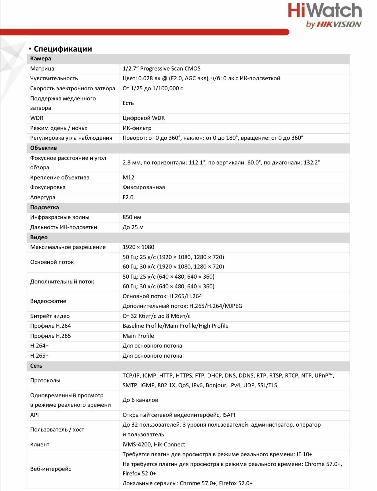 СохранитьIP-камера HIWATCH IPC-B020(B)(2.8mm) интересное:
