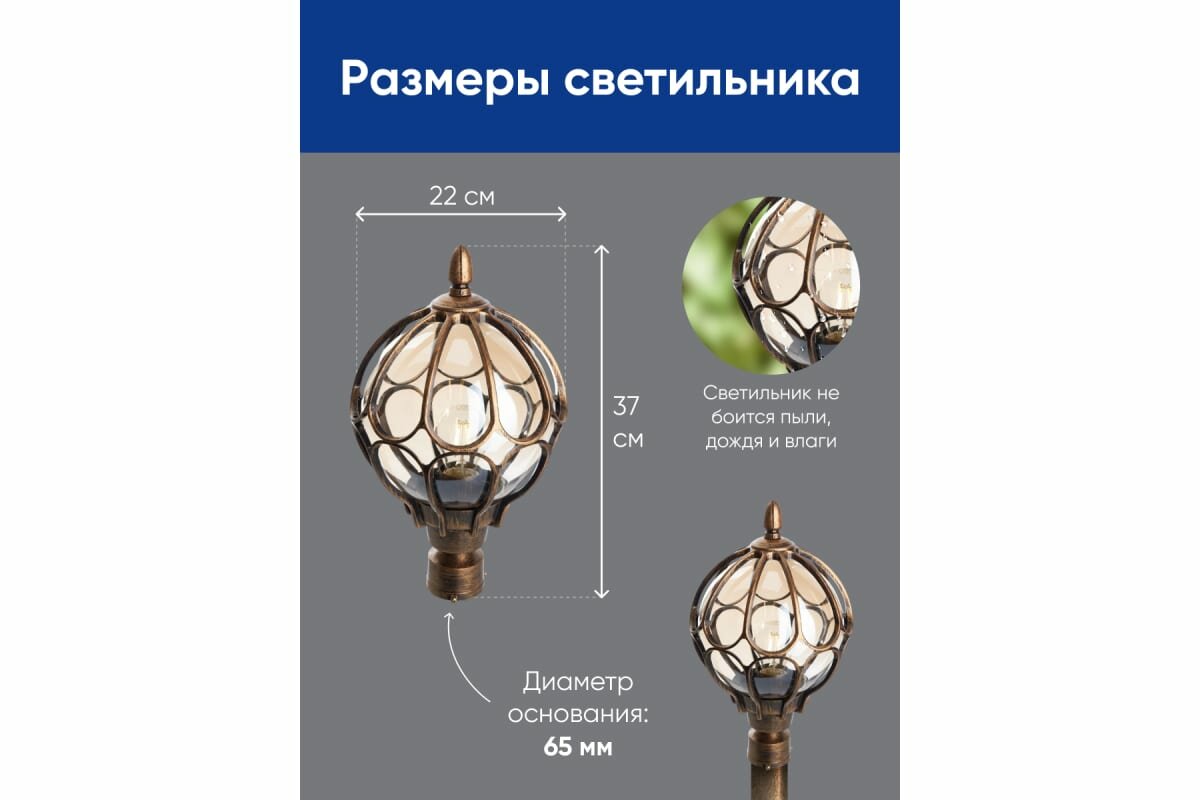 СохранитьСветильник садово-парковый PL3803 круглый на столб 60W 230V E27, черное золото, FERON 11360 (1 шт.) интересное: