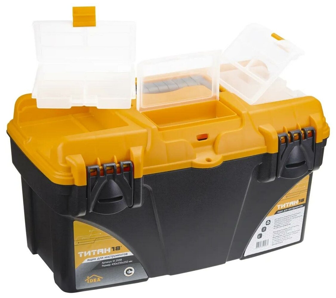 Ящик для инструментов титан 18" (с коробками) черный с желтым IDEA (М-Пластика) М2938 интересное: