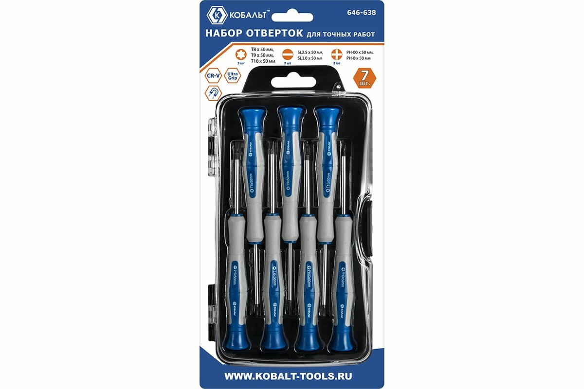Набор отверток для точных работ Кобальт Ultra GRIP, (7 шт.) арт. 646-638