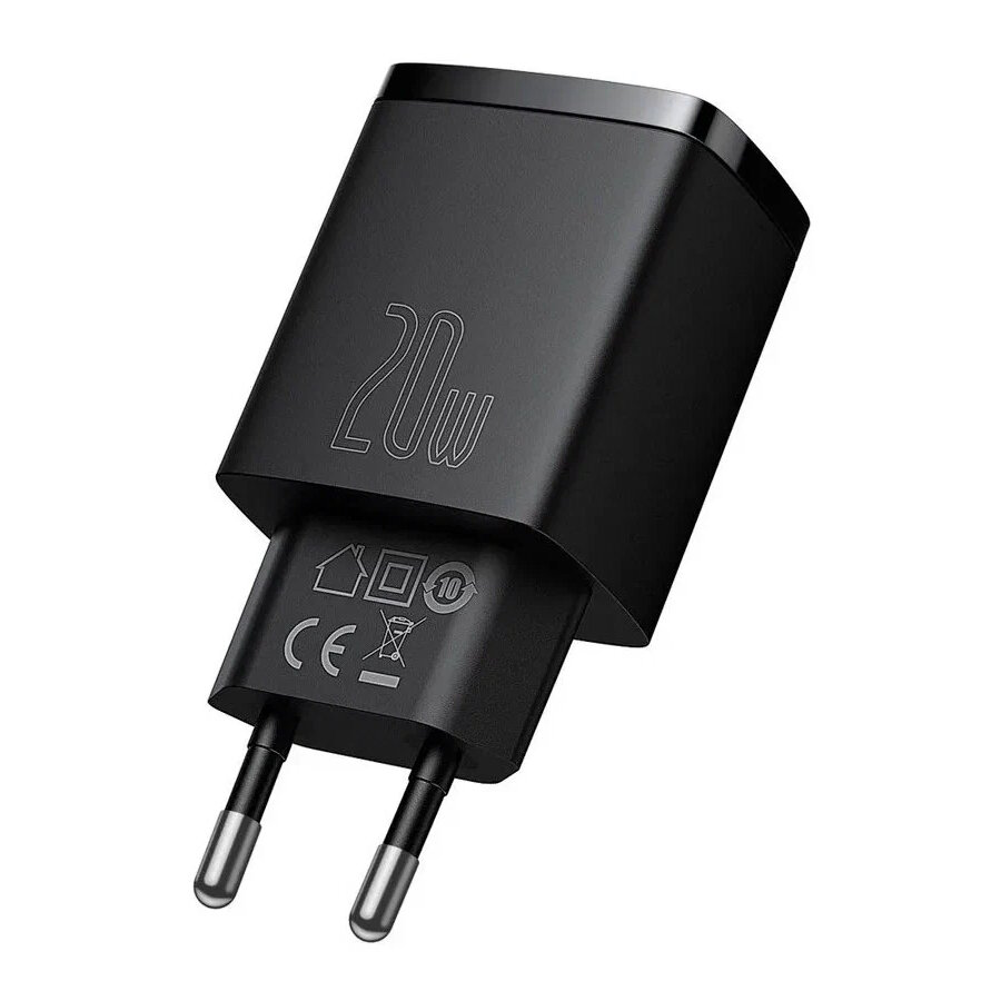 Купить Сетевое зарядное устройство Baseus Compact Quick Charger USB + Type-C 20W EU (CCXJ-B01, CCXJ-B02) (black)