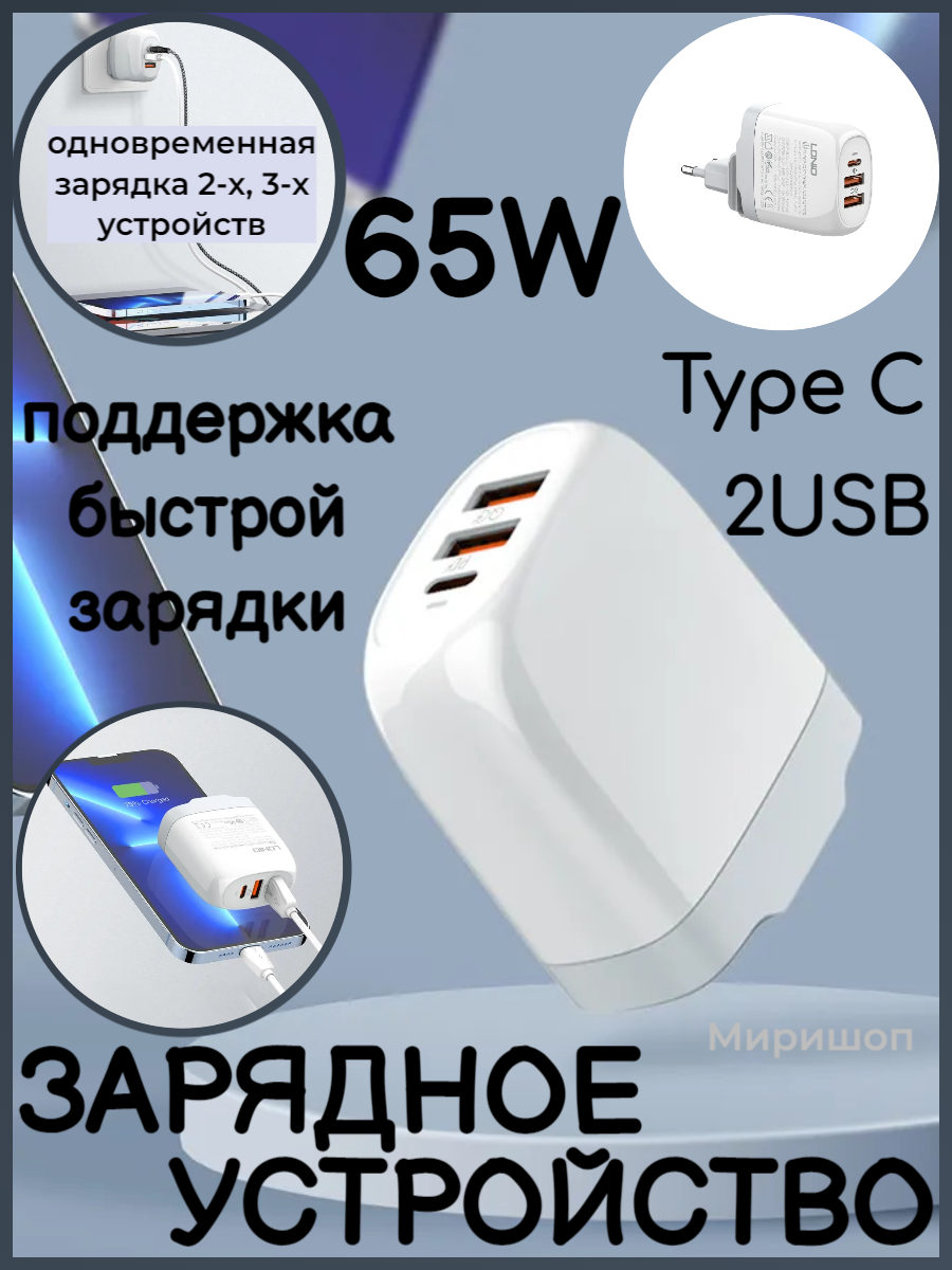 Зарядное устройство на 65W Type C + 2USB LDNIO A3511Q интересное: