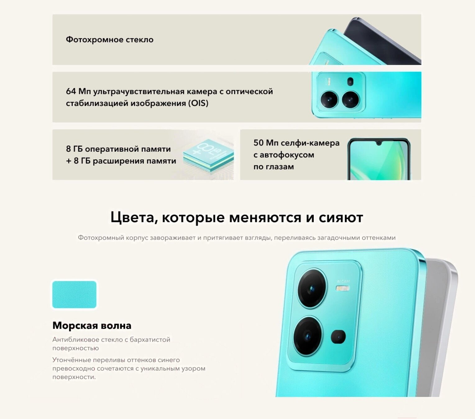 СохранитьСмартфон vivo V25 8/256 ГБ RU, Dual nano SIM, морская волна интересное: