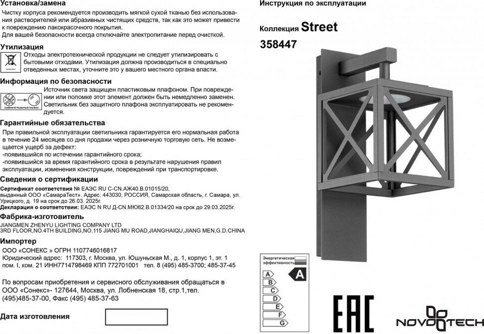 Уличный настенный светодиодный светильник Novotech Street 358447