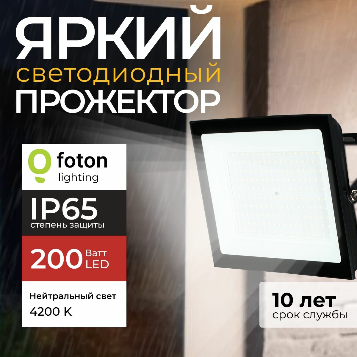 Прожектор светодиодный уличный FL-LED Light-PAD 200 Ватт 4200К нейтральный свет, фонарь для освещения, черный корпус 20000лм IP65 Foton Lighting