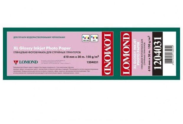 Бумага для струйной печати Lomond 1204031, глянцевая, 610 мм x 30 м, втулка 50.8 мм, 150 г/м2
