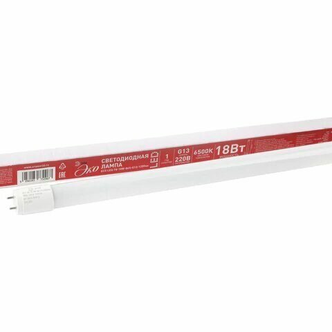 Лампа-трубка светодиодная ЭРА Эко, 10 Вт, 25000 ч, 600 мм, холодный белый, ECO LED T8-10W-865-G13-600mm 454898