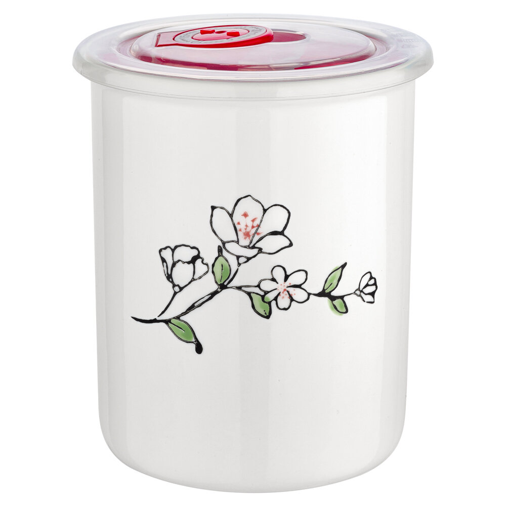 Купить Керамическая банка с вакуумной крышкой Flower белая, маленькая 0,7 л. C-06-004-WF
