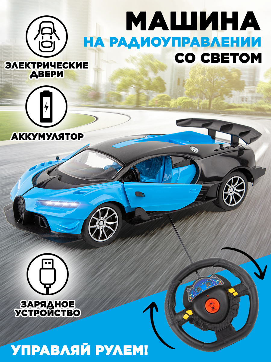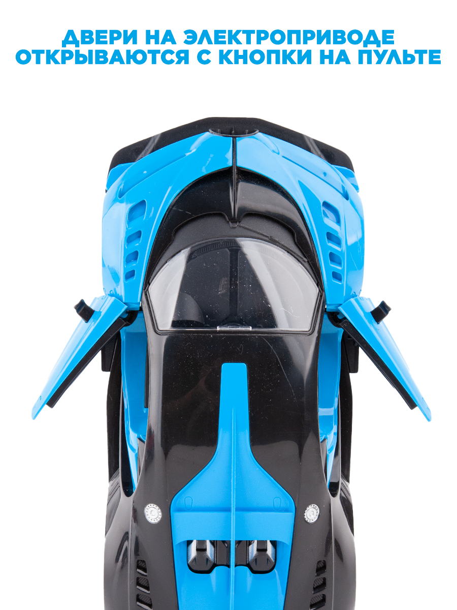 Машина на радиоуправлении со светом и звуком, открывающиеся дверцы, на аккумуляторе, синяя 28см