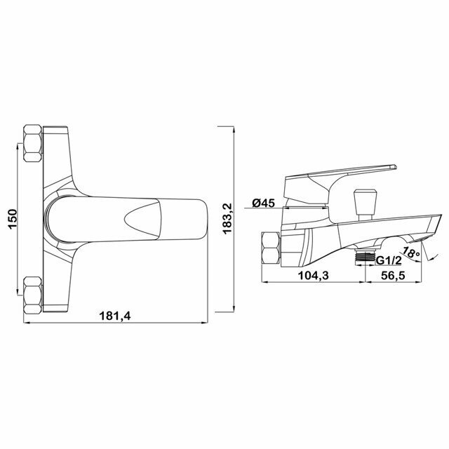 Смеситель для ванны/душа Swedbe Venado 1630 настенный, однозахватный, короткий излив, цвет: хром