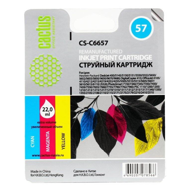 СохранитьКартридж CACTUS CS-C6657 18ML COLOR 450/5145/5150/5151/5550/5552/5650/5 интересное: