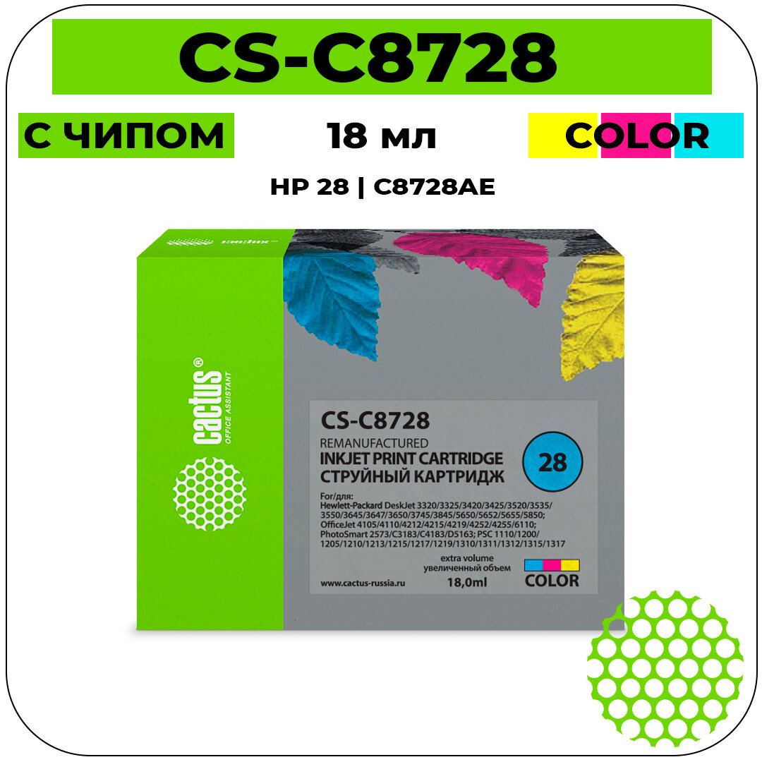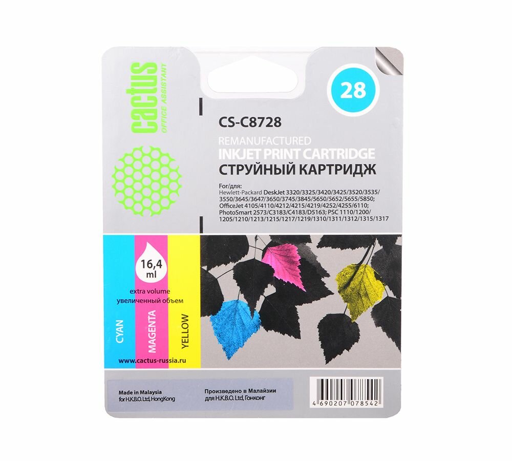 СохранитьКартридж CACTUS CS-C8728, №28, многоцветный / CS-C8728 интересное: