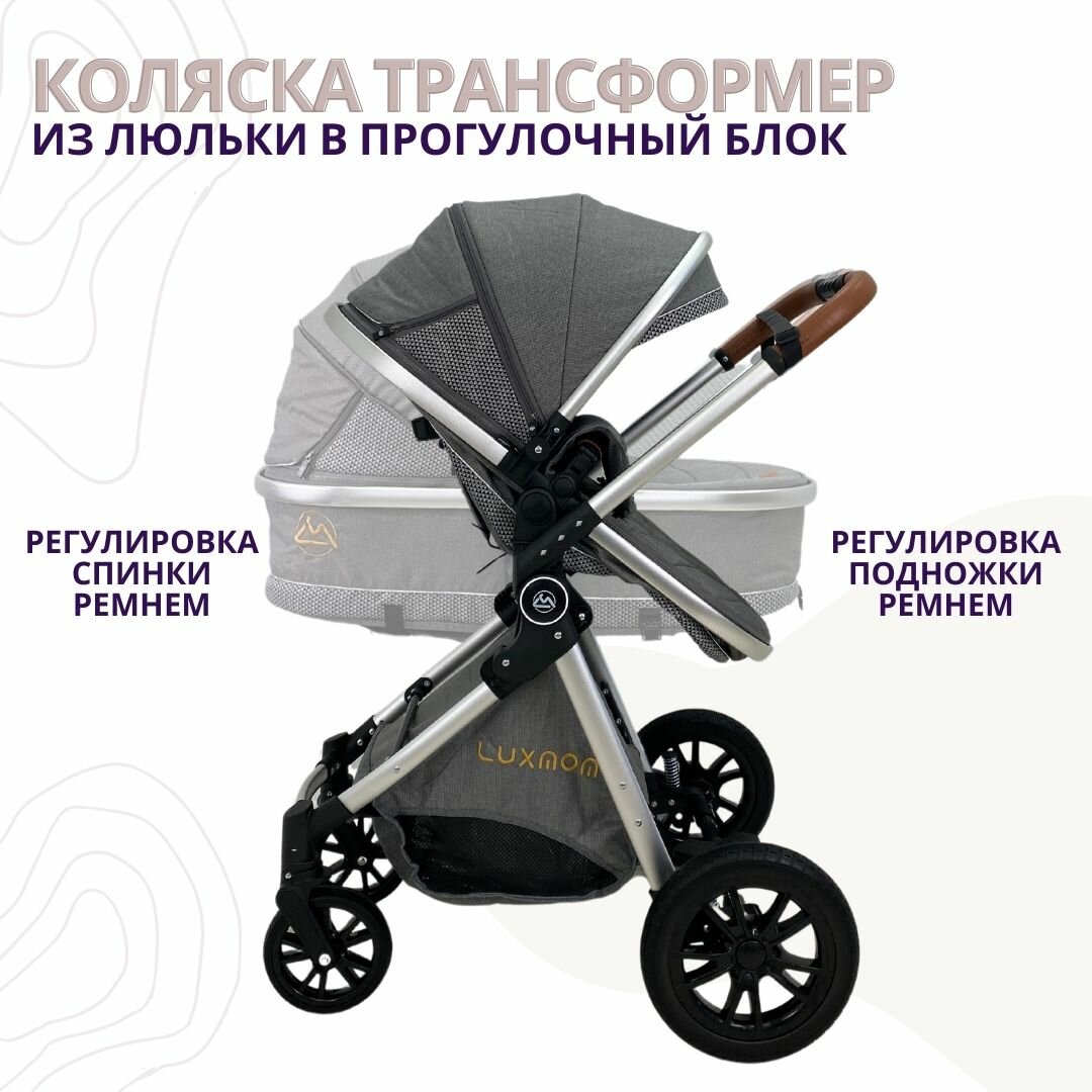 Купить Детская коляска - трансформер Luxmom v9 3в1 серый, всесезонная, автолюлька