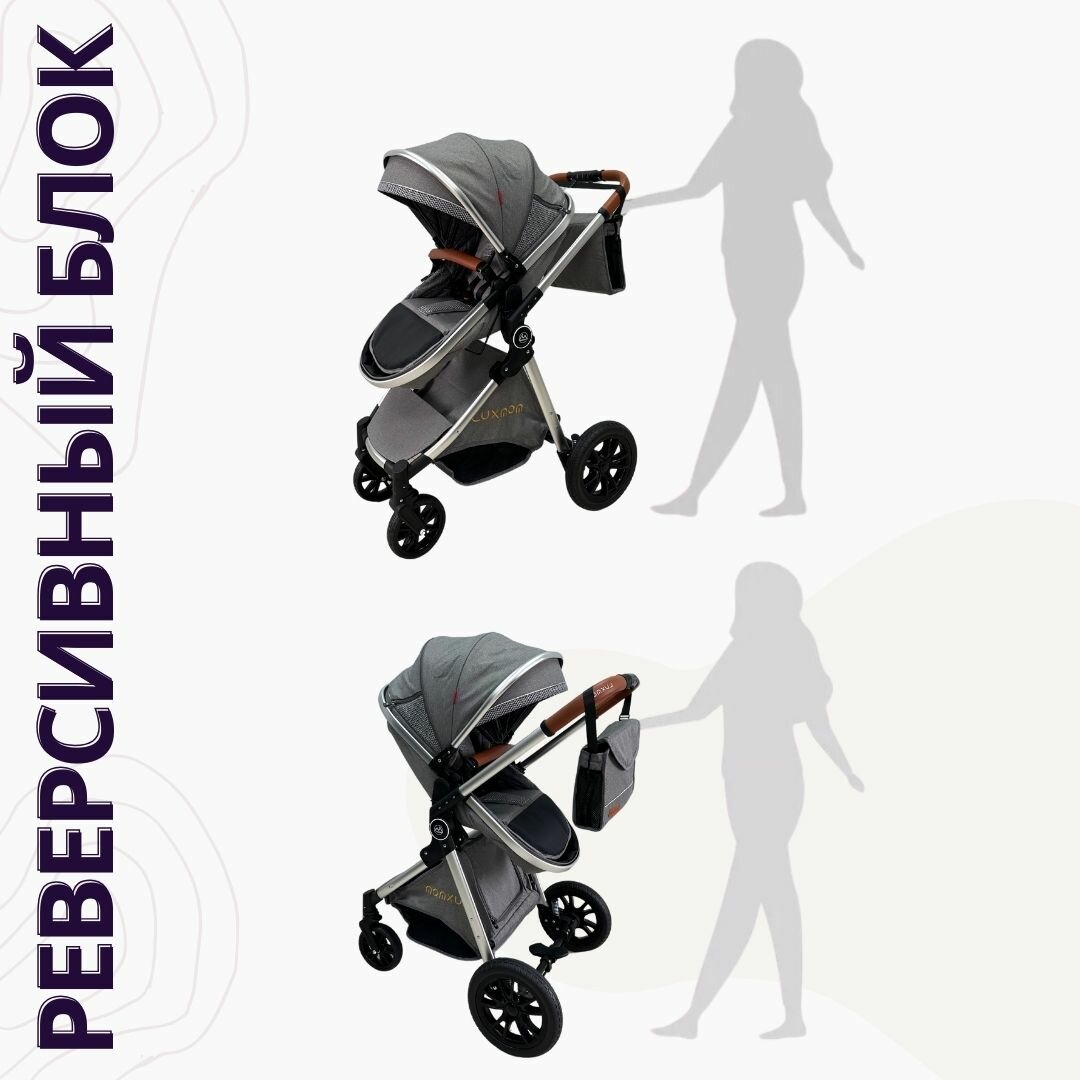 Коляска - трансформер 2в1 Luxmom V9, коляска для новорожденных (серая)