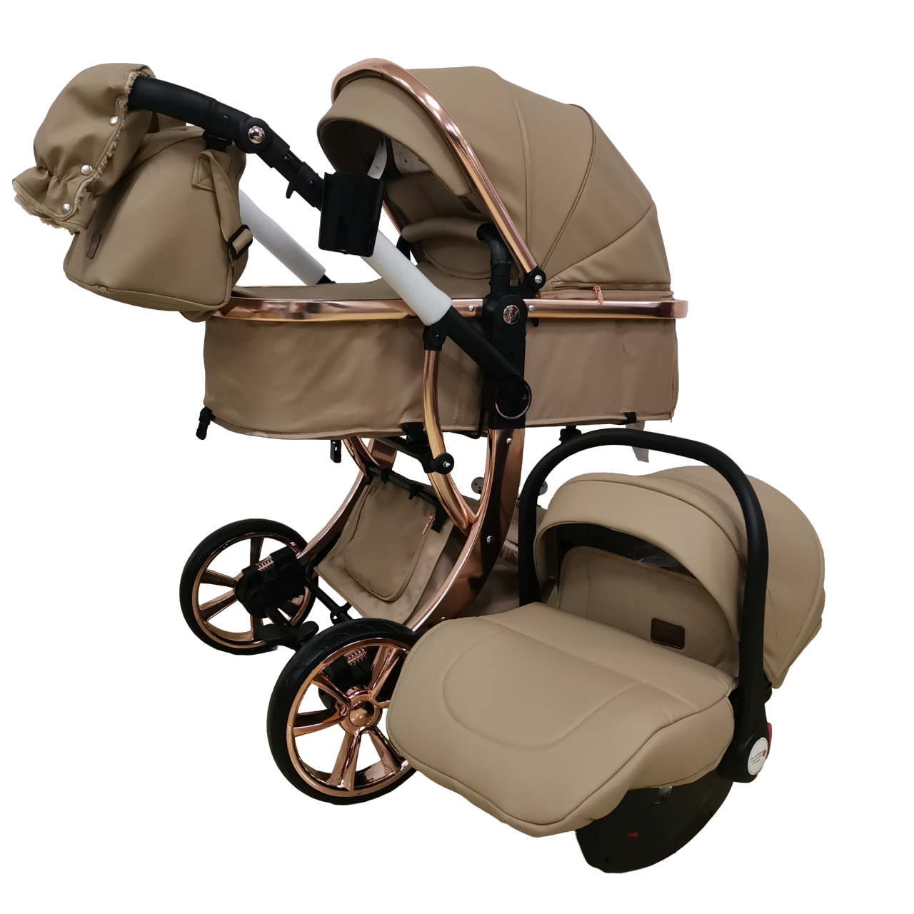 Купить Коляска - трансформер 3в1 Luxmom 608 коричневая экокожа, ПА