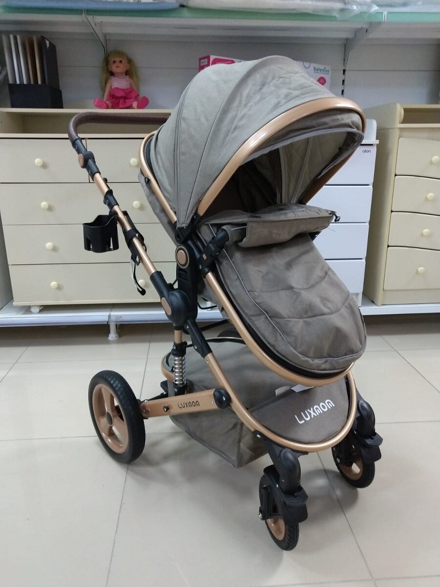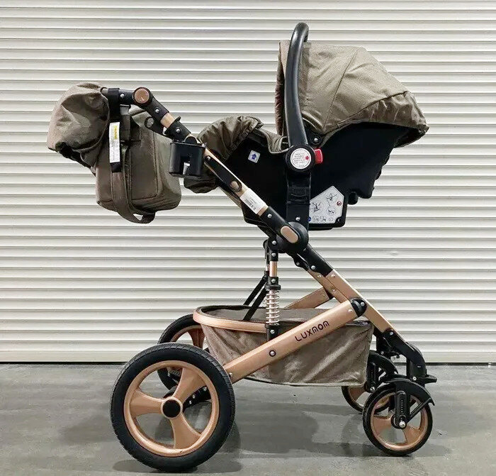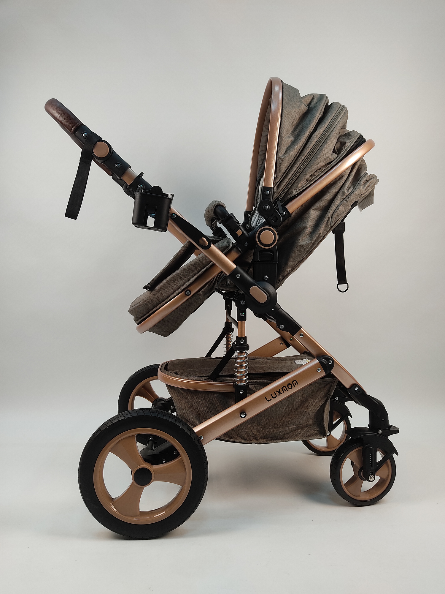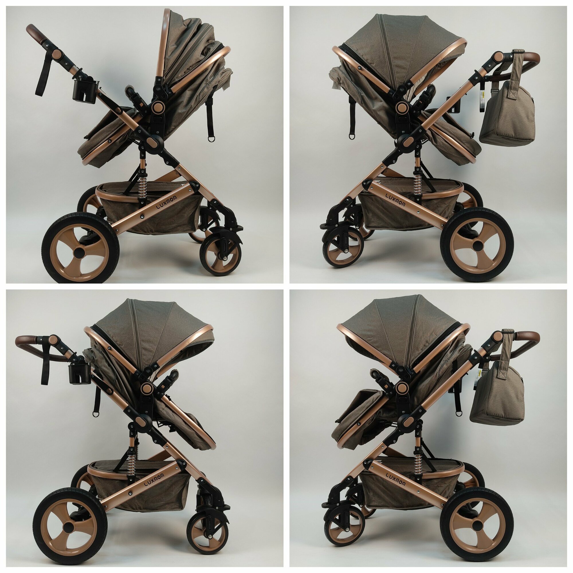 Коляска-трансформер Luxmom 518 3в1 с перекидной ручкой, хаки интересное: