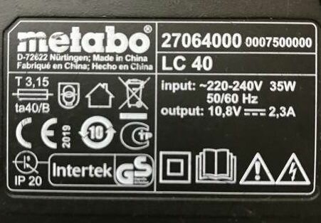 Зарядное устройство LC 40 (10.8 В) Metabo (627064000) METABO