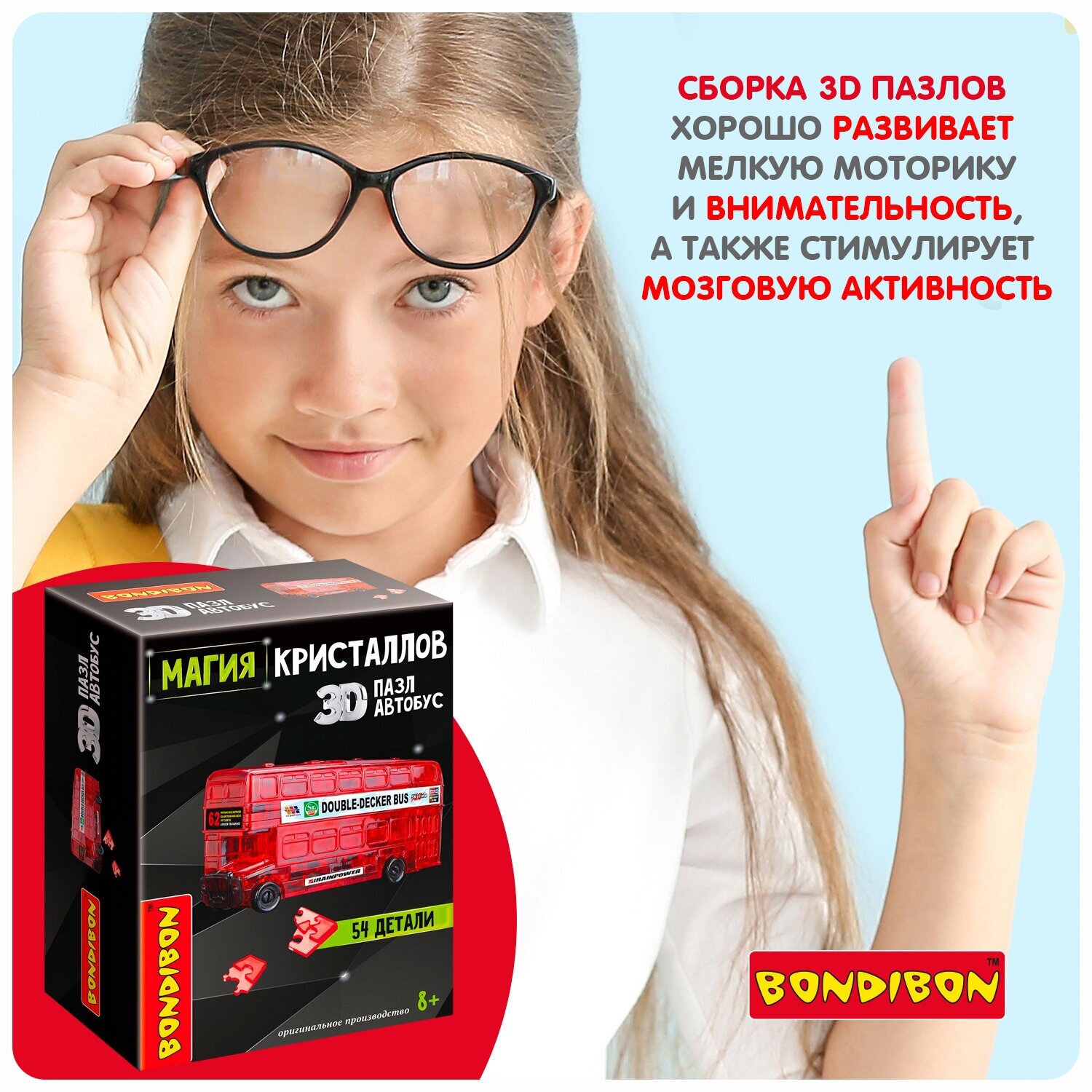 Пазл 3D Bondibon Магия Кристаллов "автобус", 54 детали, красный (ВВ5238) интересное: