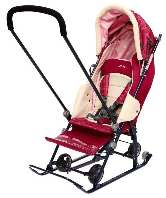 Санки-коляска НИКА Наши детки 5-2 НДТ5-2/1, вишневый "в клетку"