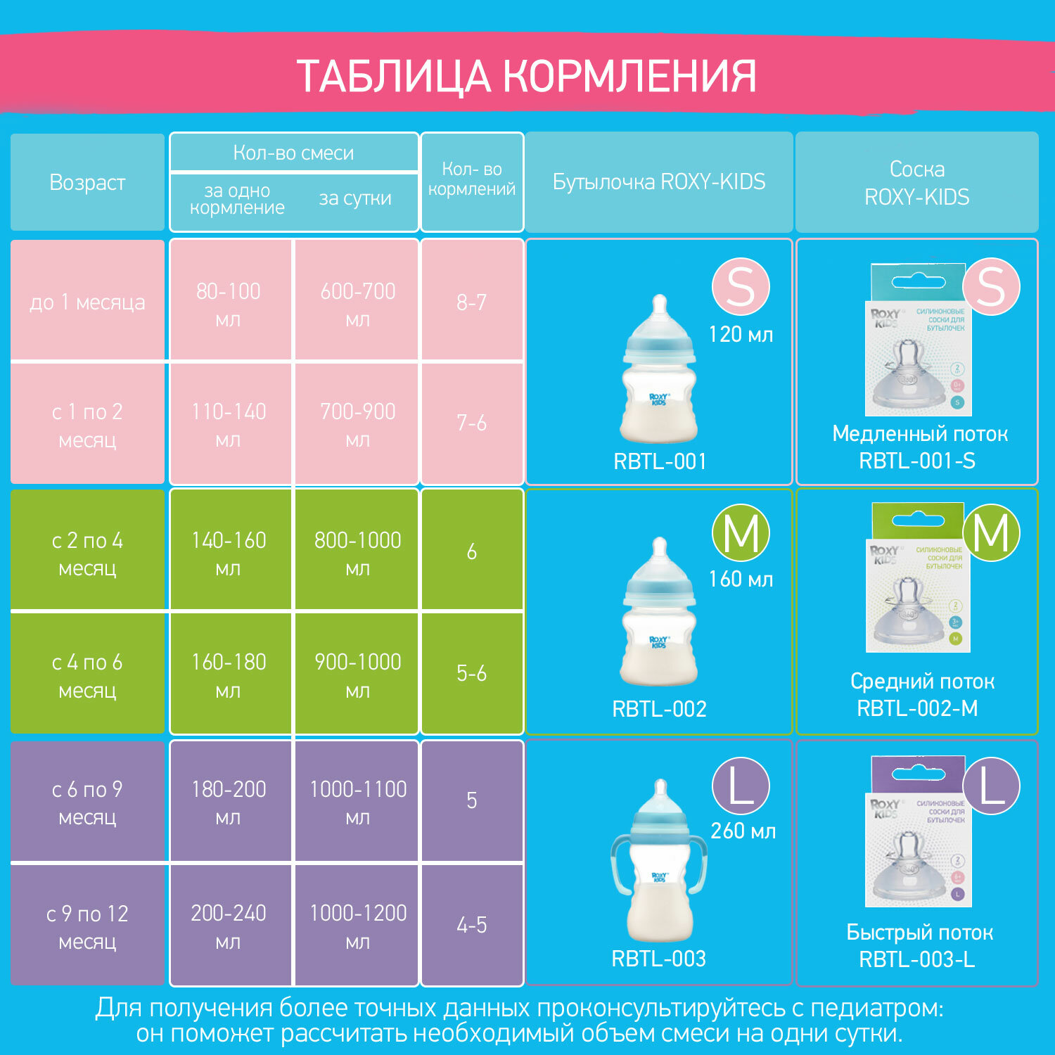 Бутылочка Roxy-kids медленный поток 120 мл 0+ мес