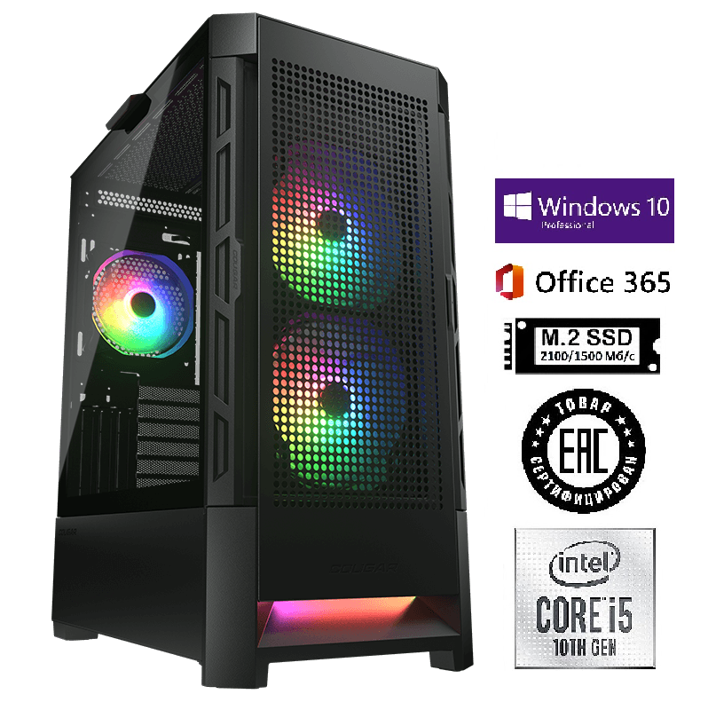 Системный блок SG-Intel Core i5-10400F/H510/DDR4 16Gb/SSD M.2 500Gb/GTX 1660 S/Ti 6Gb/Cougar Airface-Black