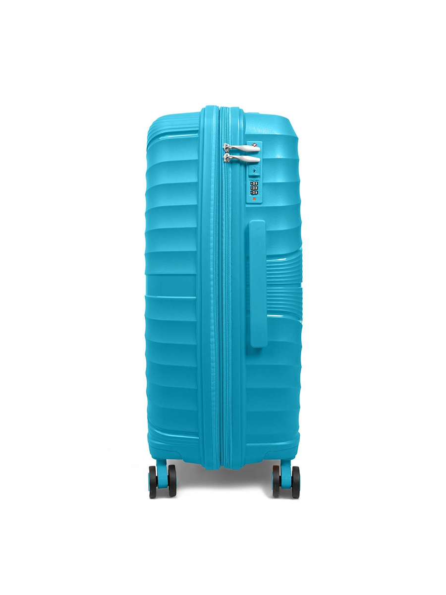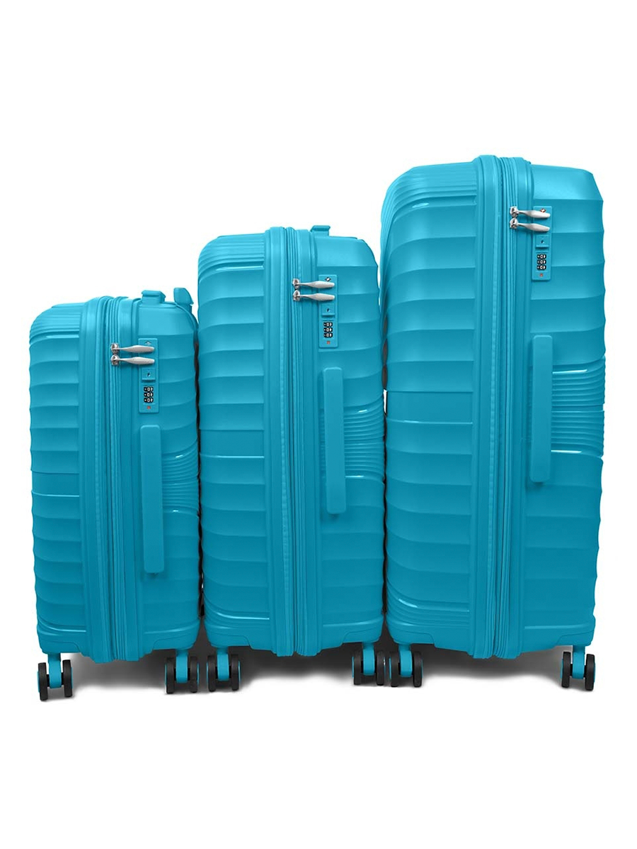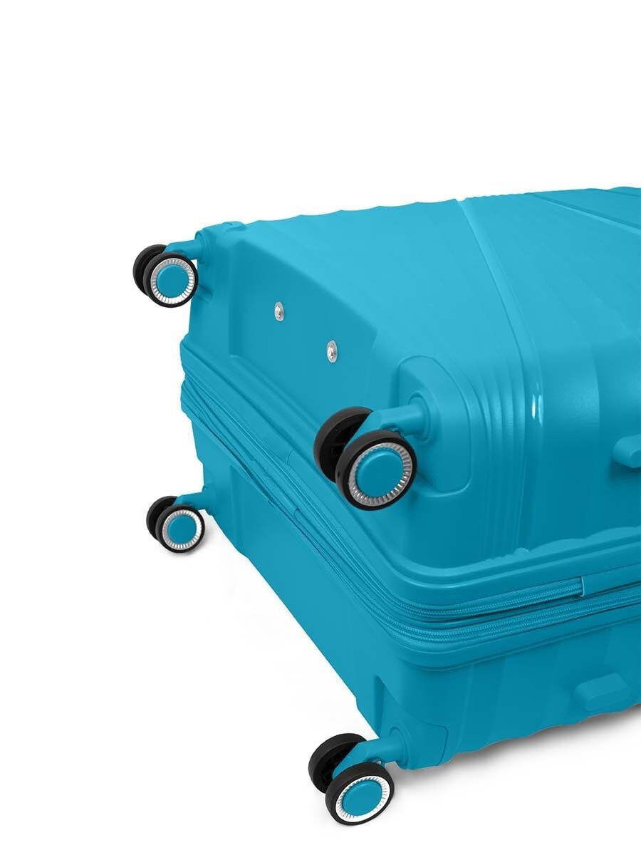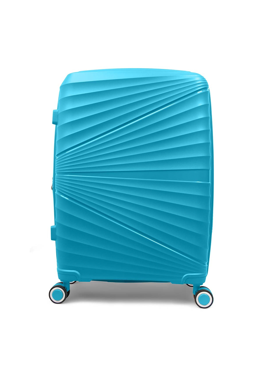 Чемодан на колесах дорожный большой семейный багаж для путешествий l TEVIN размер Л 73 см 105 л легкий 3.8 кг прочный полипропилен Голубой волна