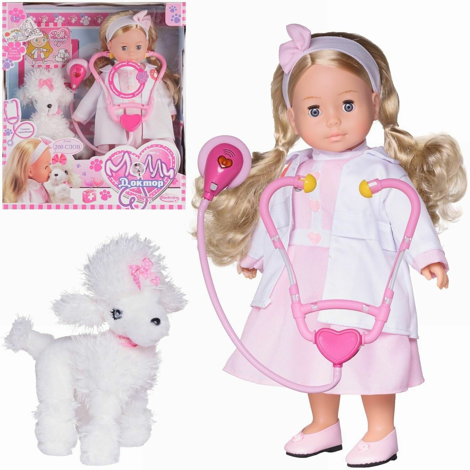 Кукла DIMIAN Molly Доктор со стетоскопом и собачкой, говорит 200 слов, частично мягконабивная, 40 см