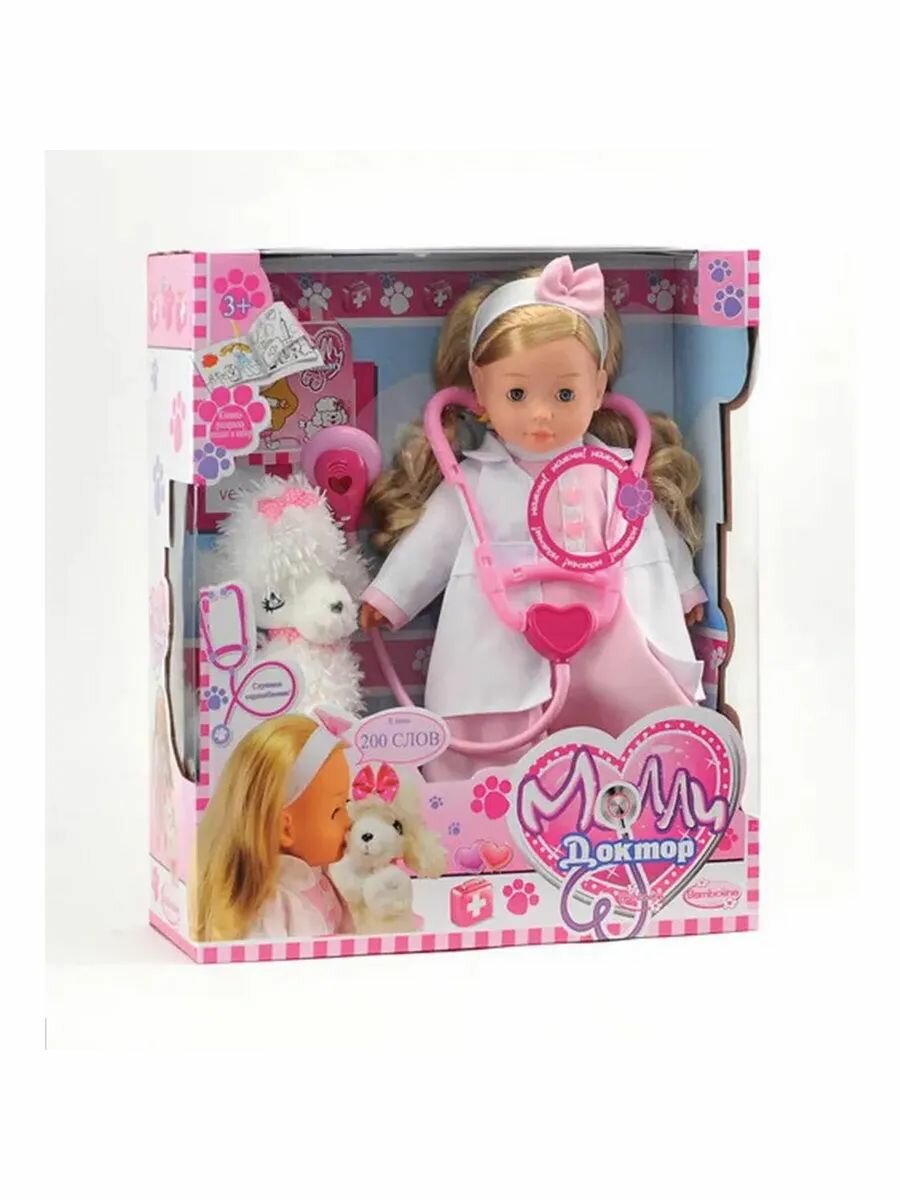 Кукла DIMIAN Molly Доктор со стетоскопом и собачкой, говорит 2 слов, частично мягконабивная, 40 см,