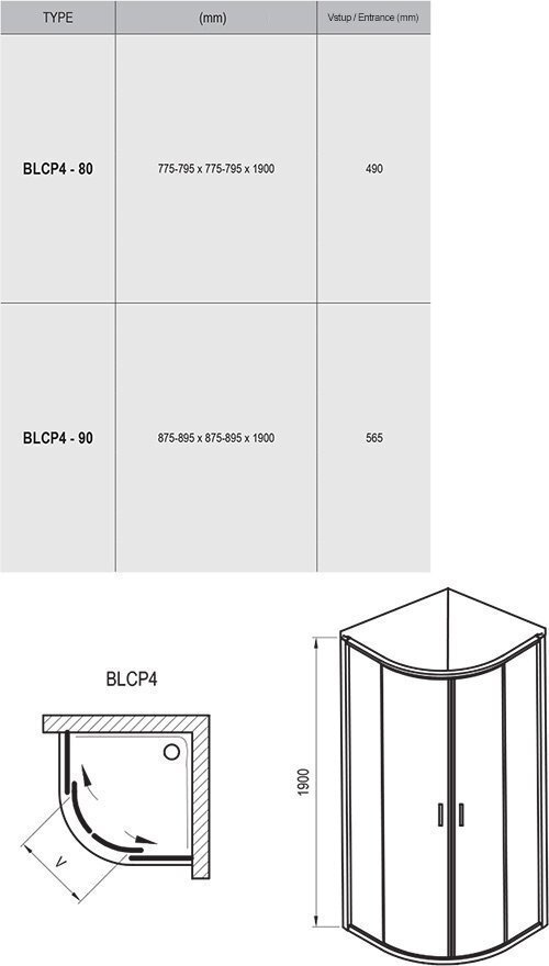 Душевой уголок RAVAK BLIX BLCP4-90 (895х895х1900) раздвиж.двери, стекло, блест.+Transparent AntiCalc