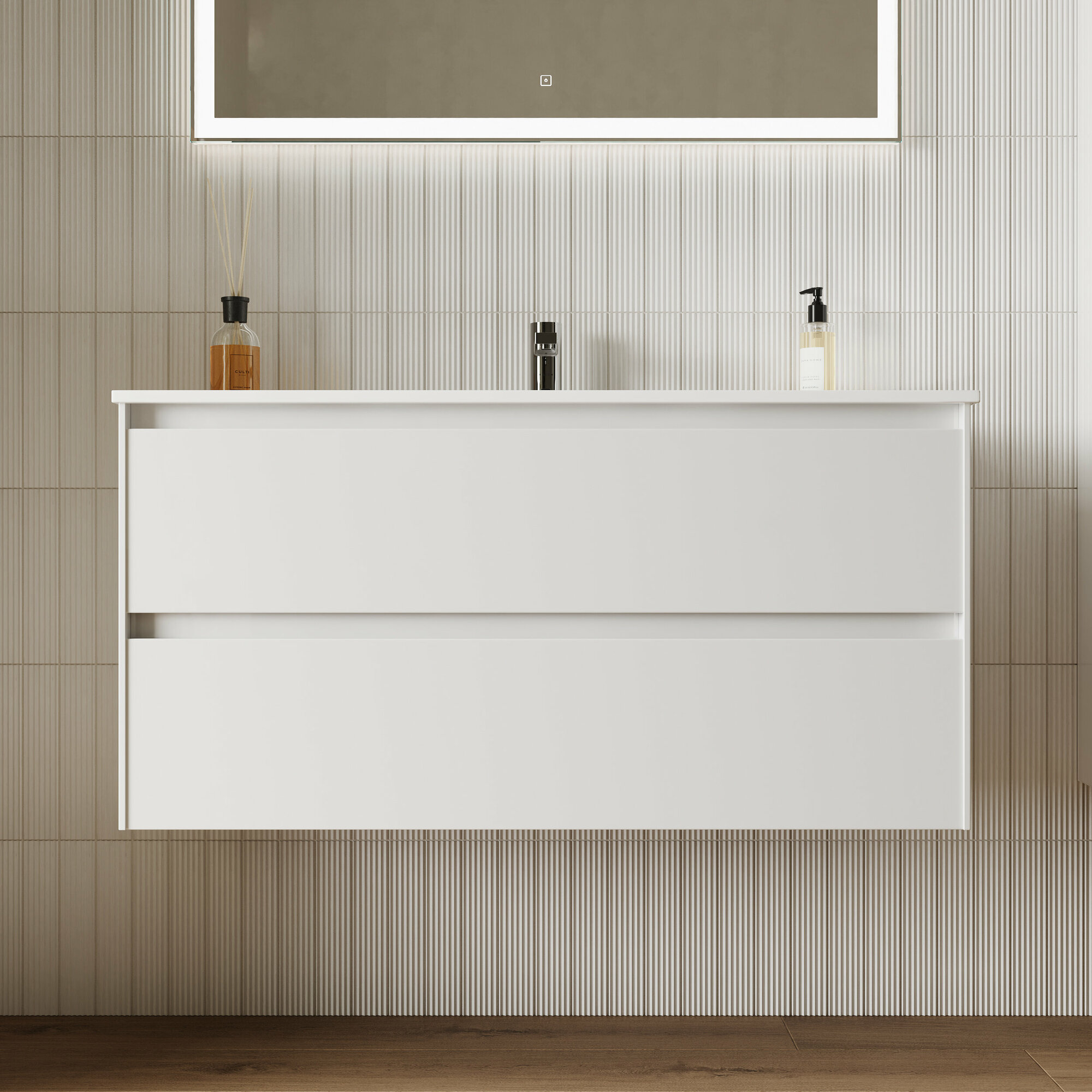 Тумба подвесная Cento 990х450х500, c двумя ящиками оснащенными доводчиками, белый глянец