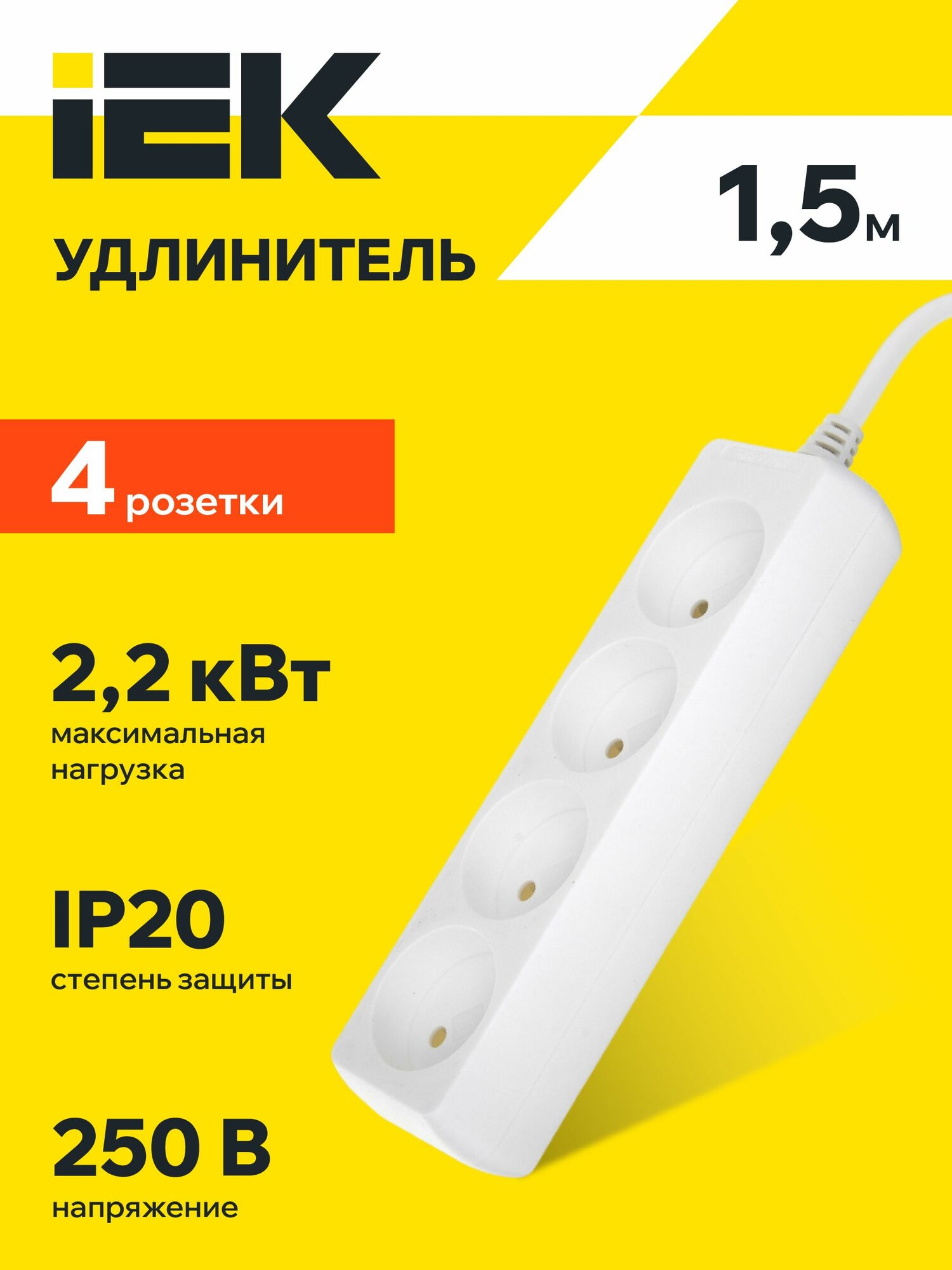 Удлинитель У4 4 места 2P/1,5м 2х0,75мм2 10А/250В IEK