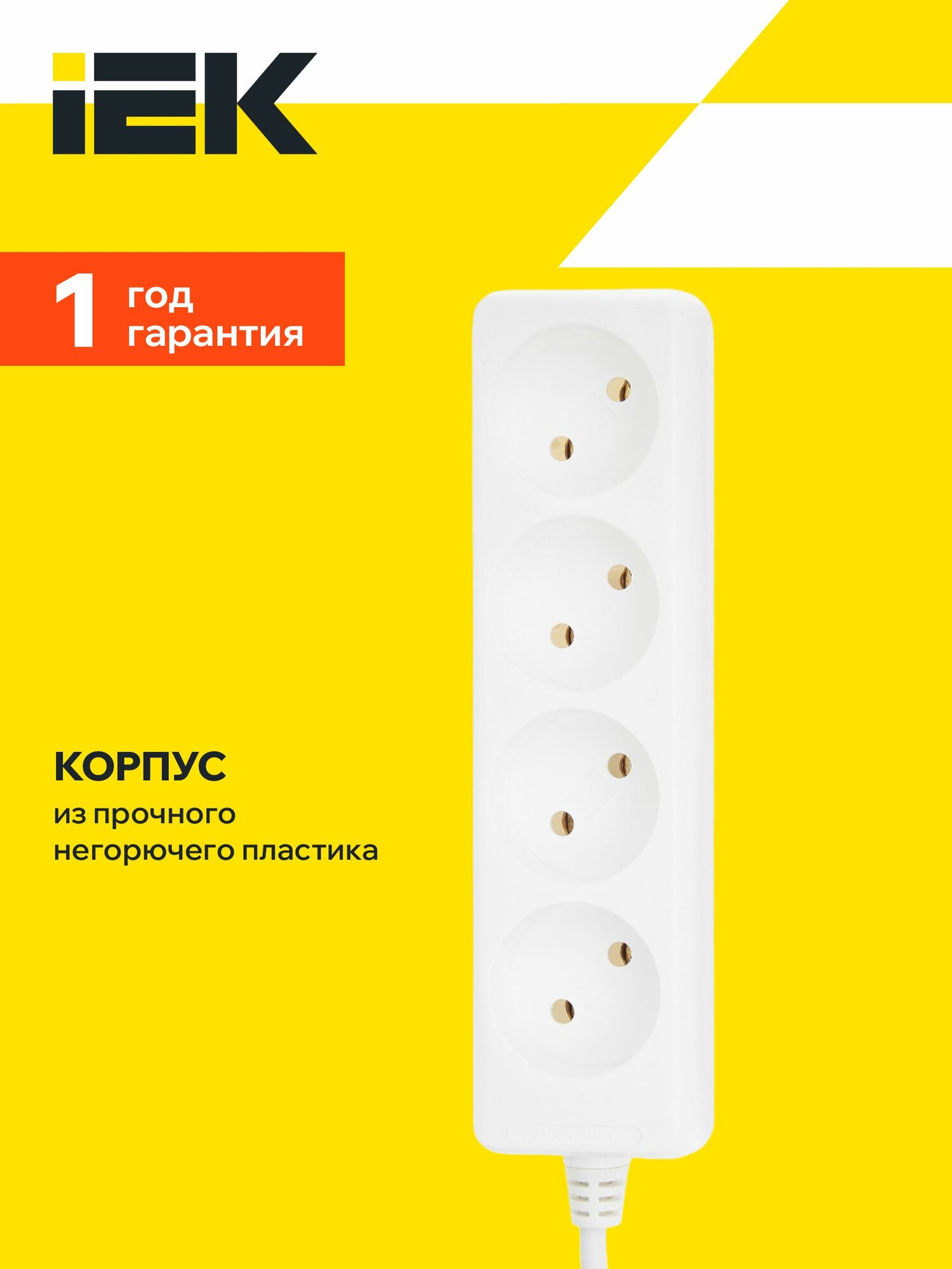 Удлинитель 4х1.5м без заземл. 10А IP20 У4 2P, IEK WYP10-06-04-01-N (1 шт.)