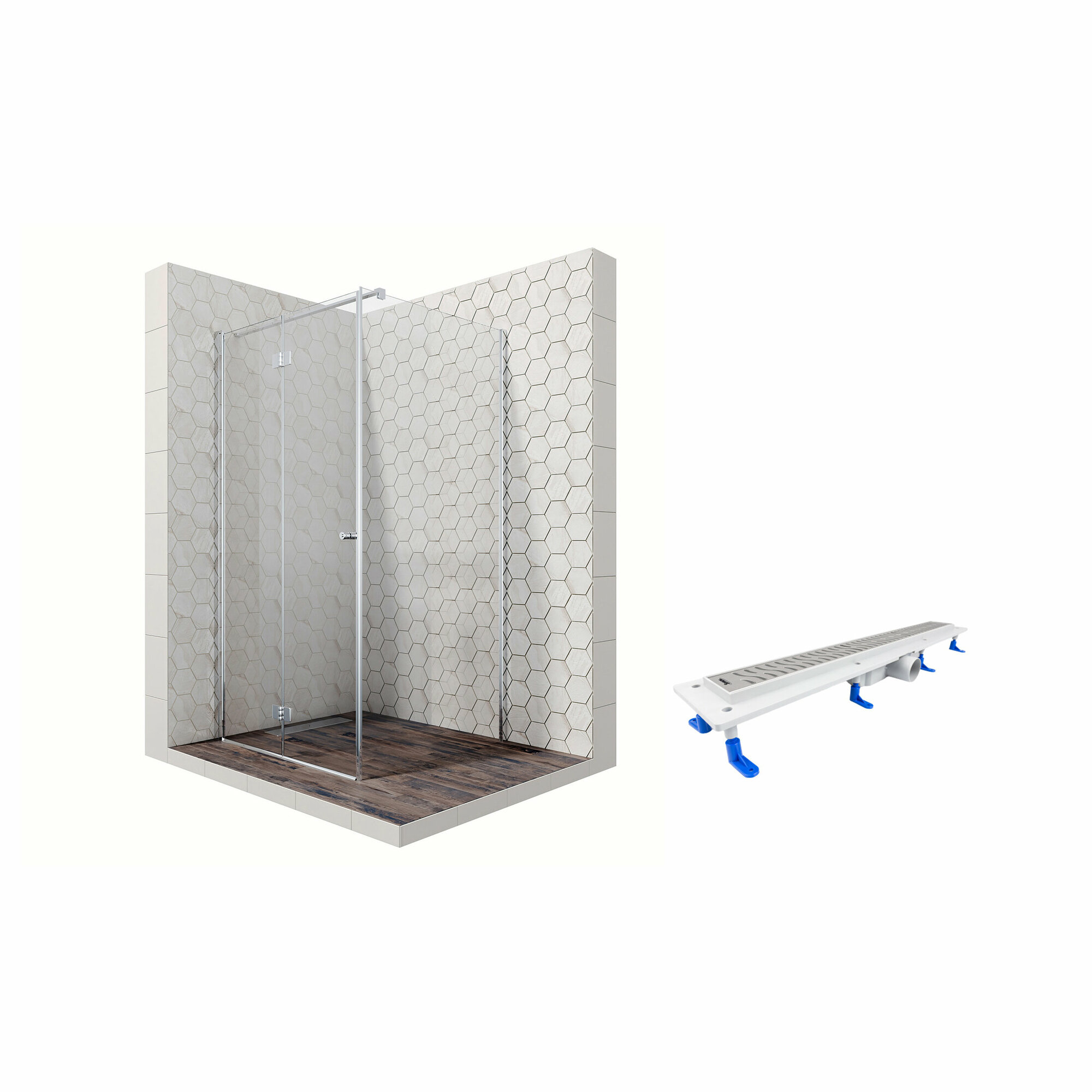 Комплект квадратного душевого ограждения с линейным трапом Ambassador Diamond 12011106R-ST6, с EasyClean, 100 х 100 см