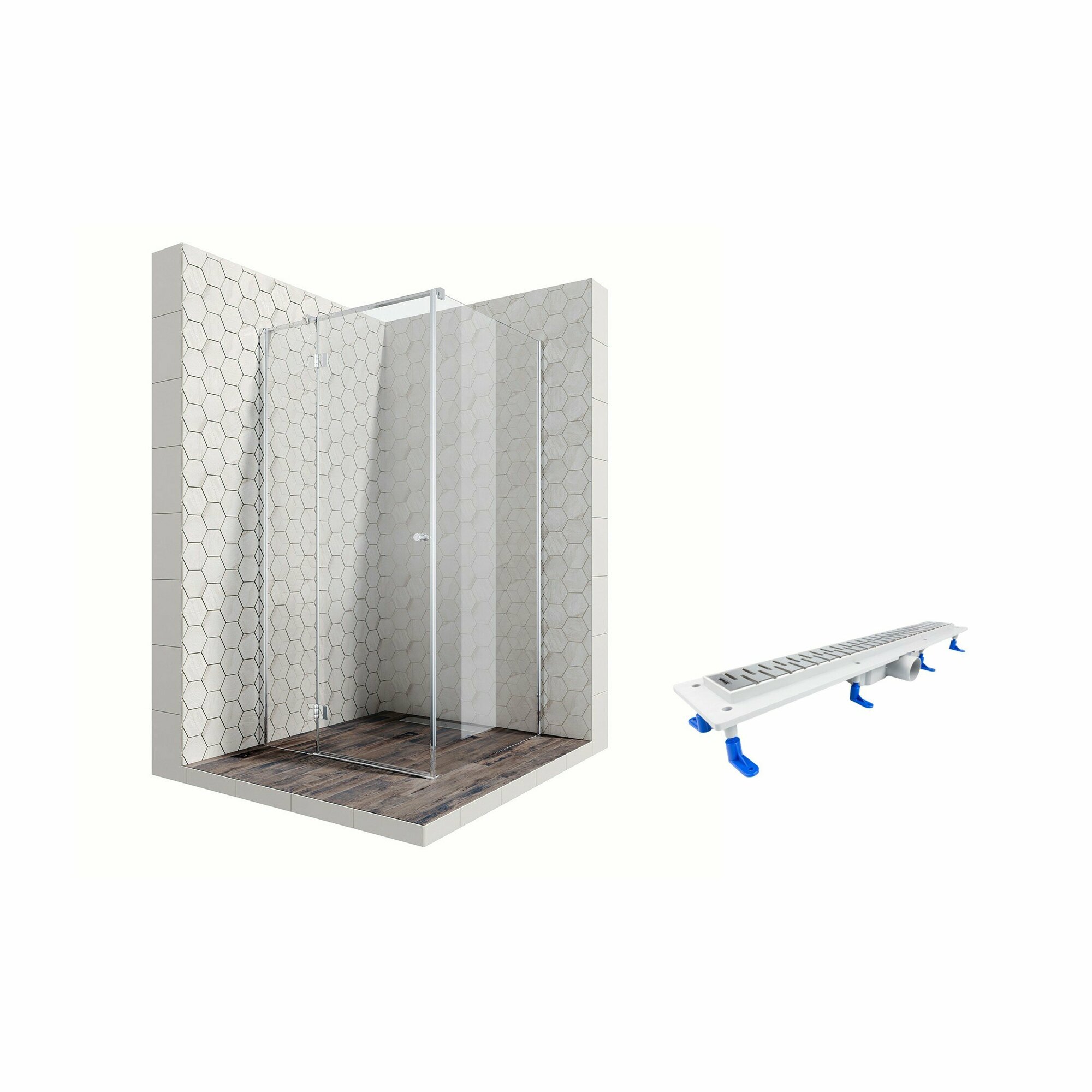 Комплект квадратного душевого ограждения с линейным трапом Ambassador Diamond 12011103L-ST5, с EasyClean, 100 х 100 см