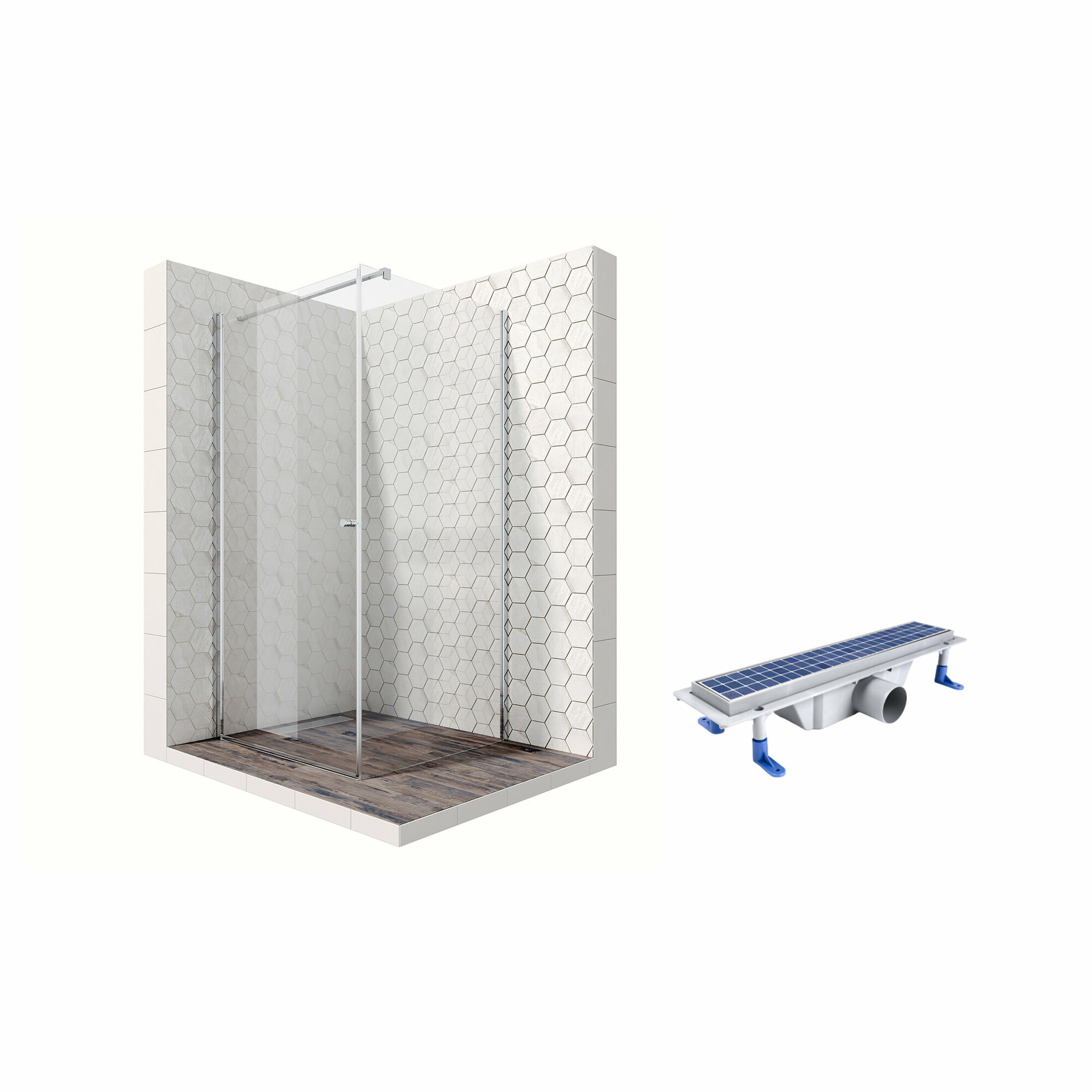 Комплект квадратного душевого ограждения с линейным трапом Ambassador Nord 13011103-ST1, с EasyClean, 90 х 90 см