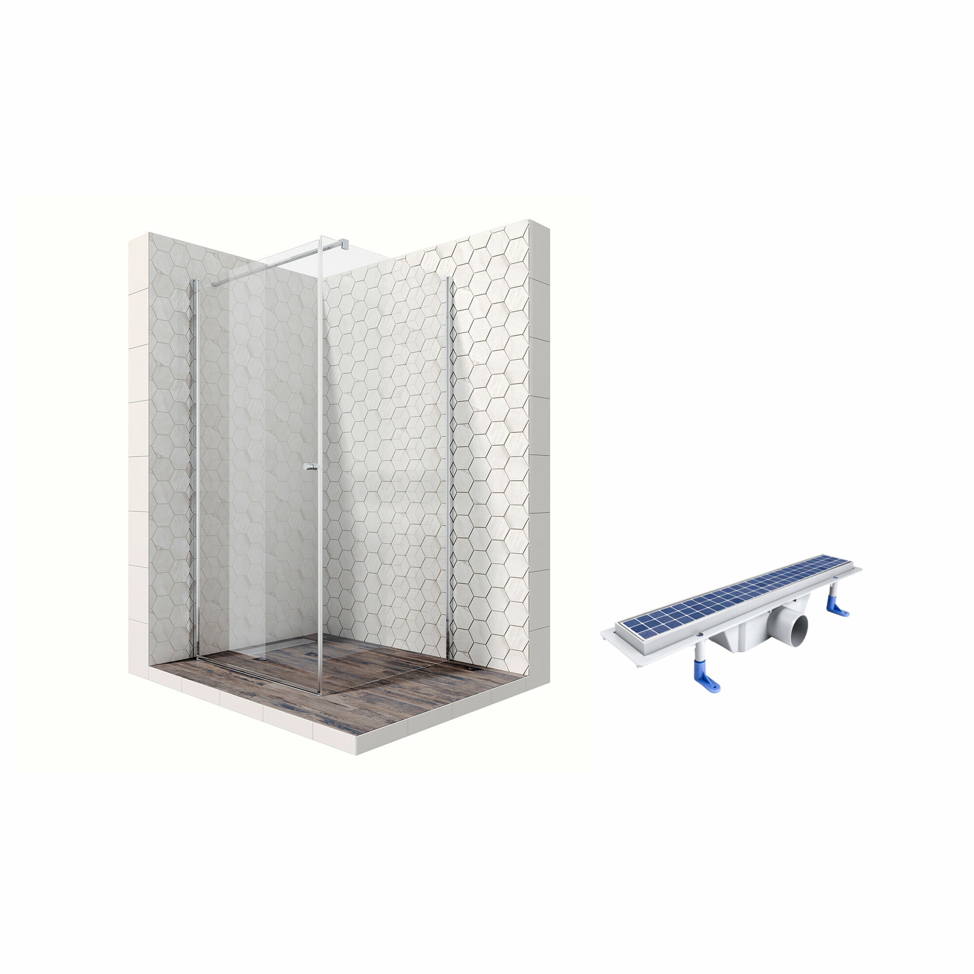 Комплект квадратного душевого ограждения с линейным трапом Ambassador Nord 13011103-ST4, с EasyClean, 90 х 90 см