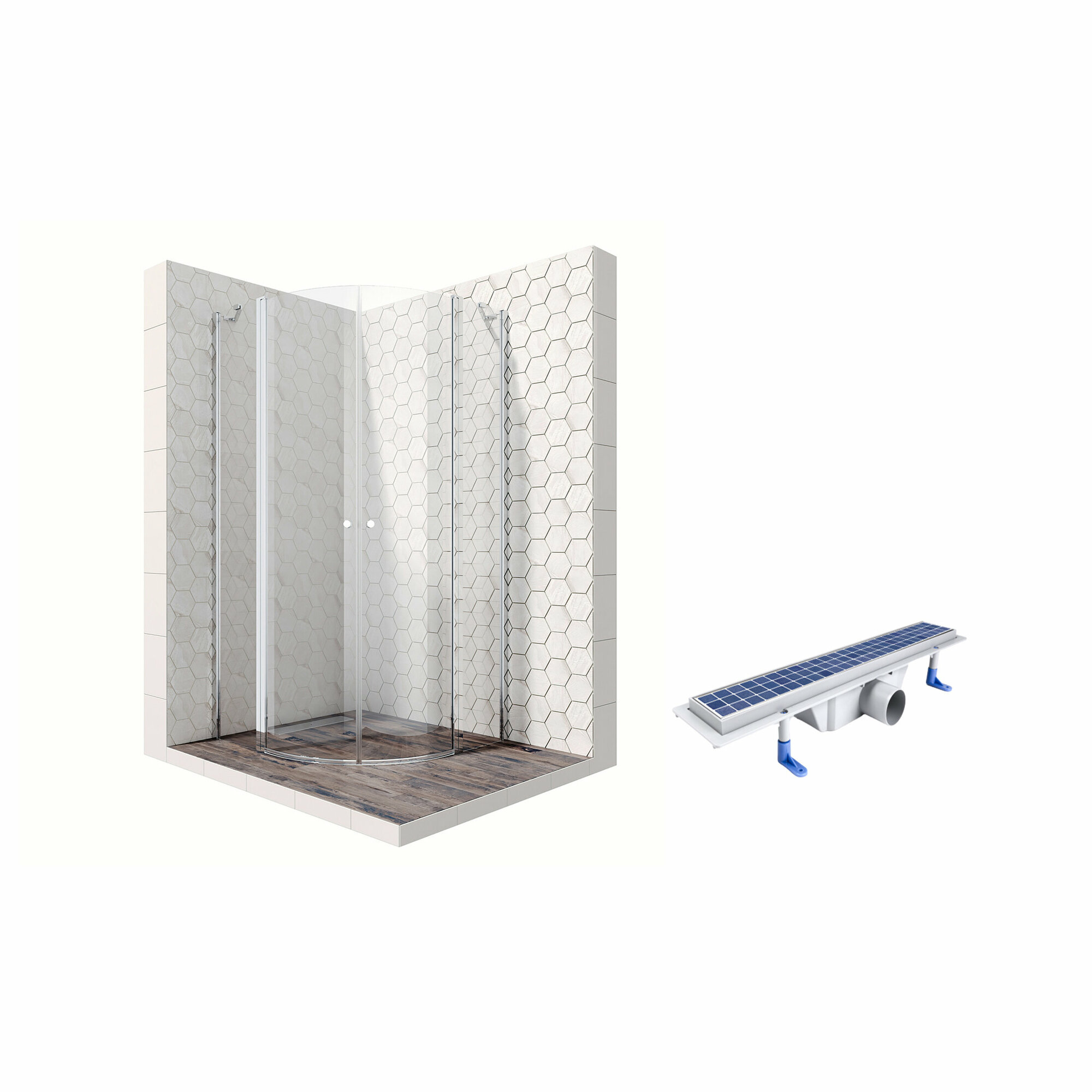 Комплект полукруглого душевого ограждения с линейным трапом Ambassador Nord 13011101-ST4, с EasyClean, 90 х 90 см
